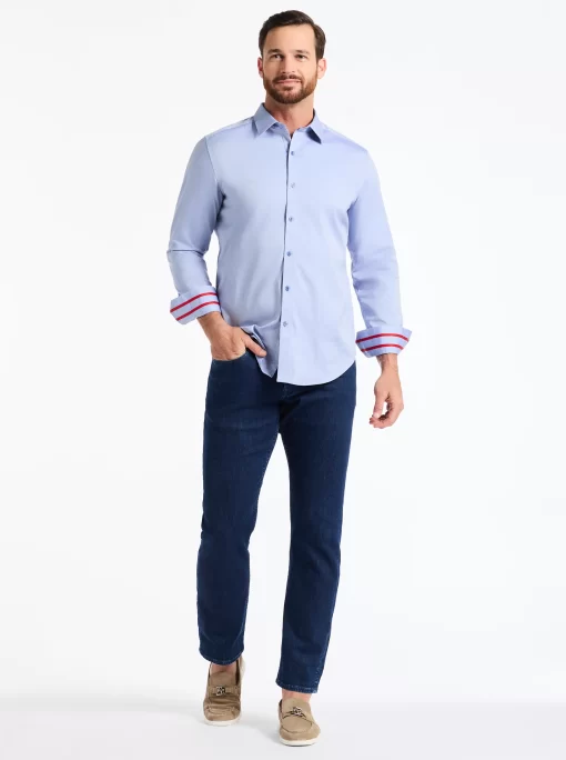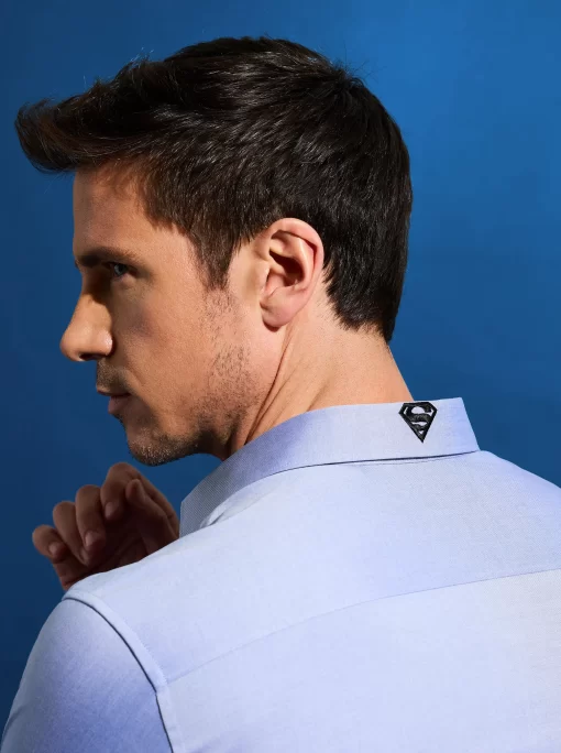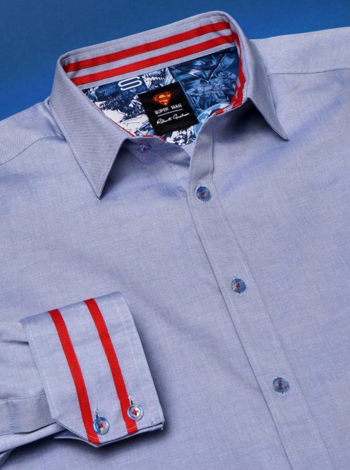 The Superman™ x Robert Graham collection brings together two icons—crafted for those who carry confidence like it’s a superpower. Exclusively limited. Individually hand numbered. This exceptional pinpoint oxford shirt combines signature Robert Graham craftsmanship with iconic Superman elements. Discover thoughtful details like the exclusive Superman x Robert Graham embroidered patch at the inside yoke and “POWER OF HOPE” embroidered beneath the collar. The shirt features contrast thread buttons, a vibrant Superman collage in blue at the inside placket, trim, and yoke, plus refined red grosgrain detailing at the inside cuff—elevating everyday style with superhero flair.