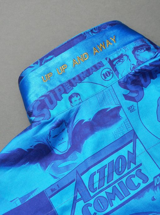 - Superman print at collar and cuff