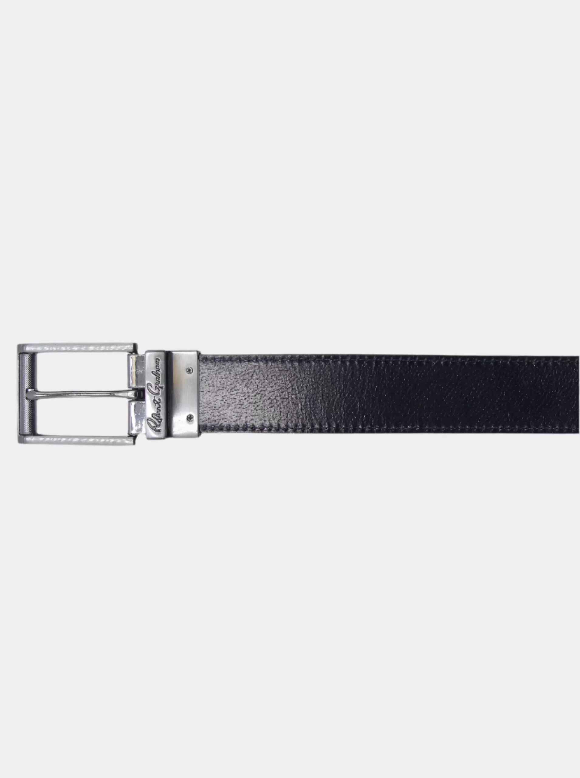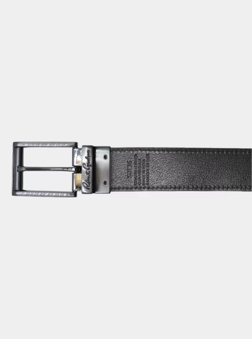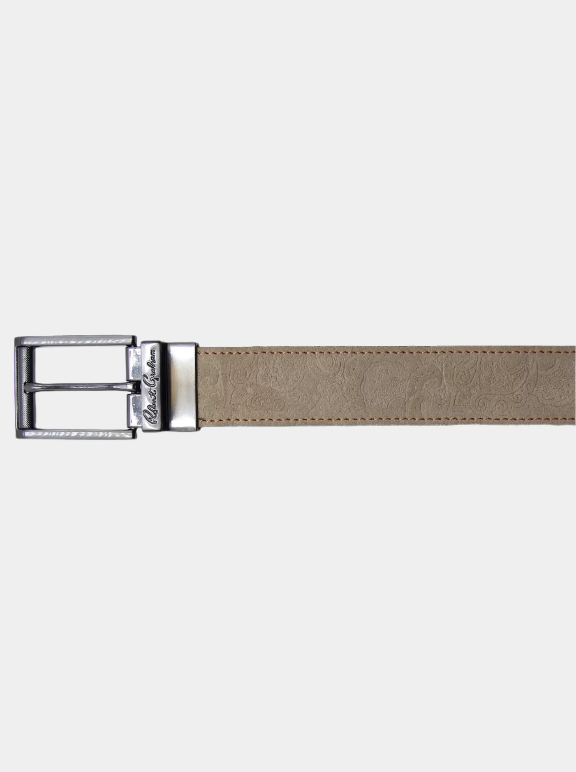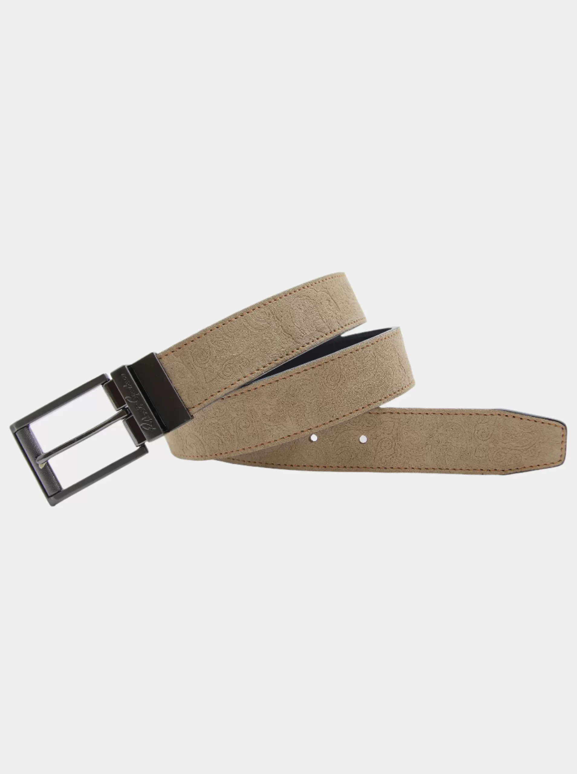 This reversible belt works double duty. Solid leather on one side offers a neutral vibe. Flip it over to reveal a tonal embossed print that adds an elegant finishing touch to any look.