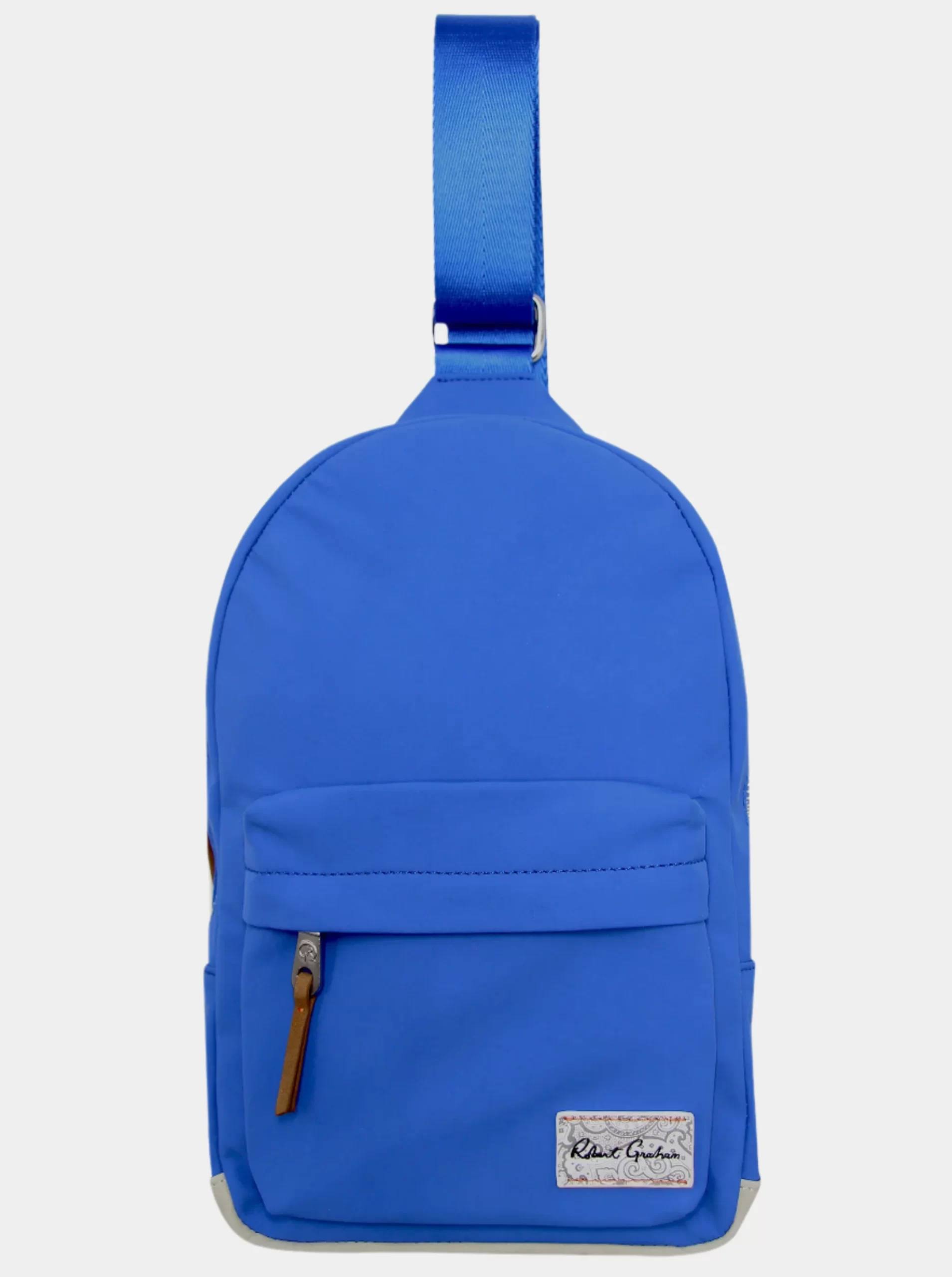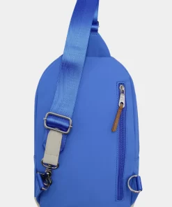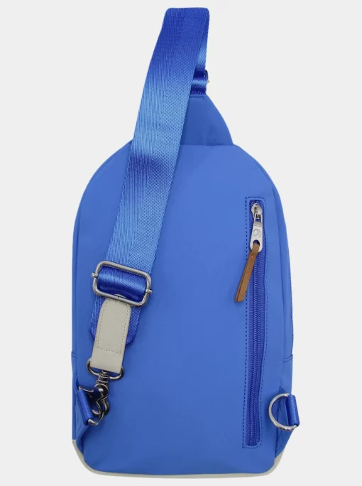 The ultimate travel essential, this sleek nylon sling bag is stylish and functional. Notice the zippered pocket at the front for storing essentials and the back pocket for easy access while on-the-go.