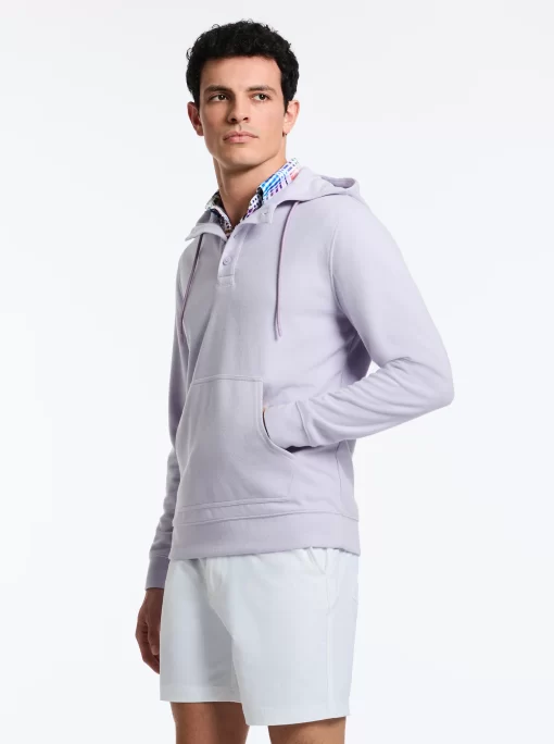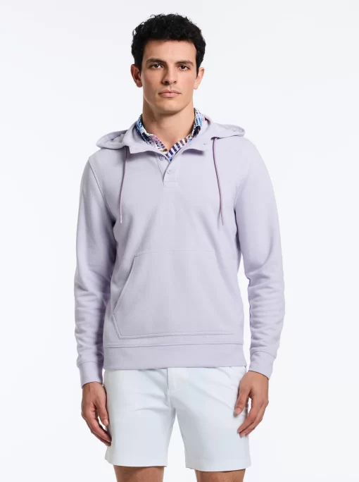 Play the course and then relax in cozy comfort with this ultra-soft hoodie. A space dye print adds style and texture, while the kangaroo pocket and button-front hood bring function. You’ll want to live in this unbelievably touchable fabric.