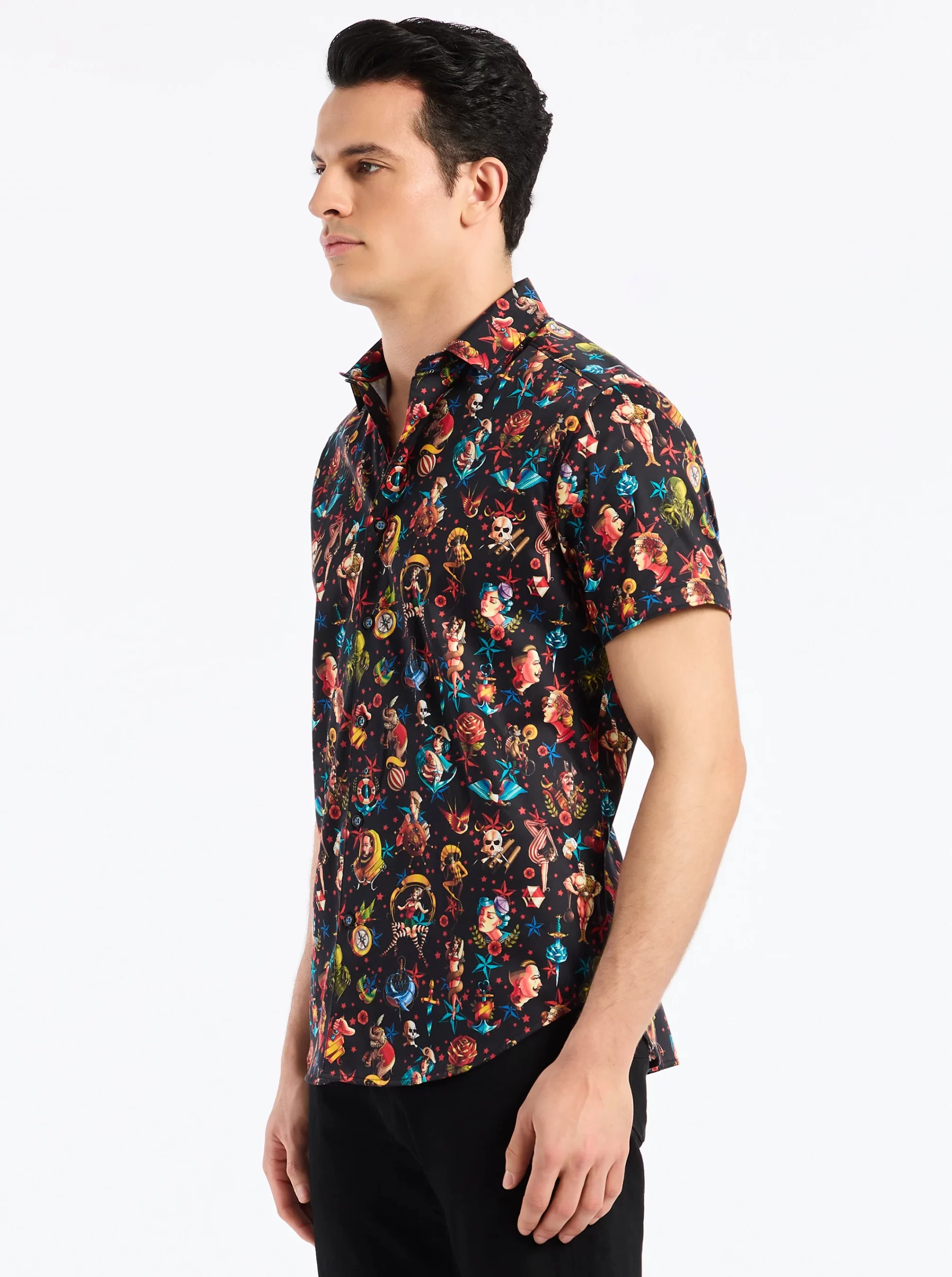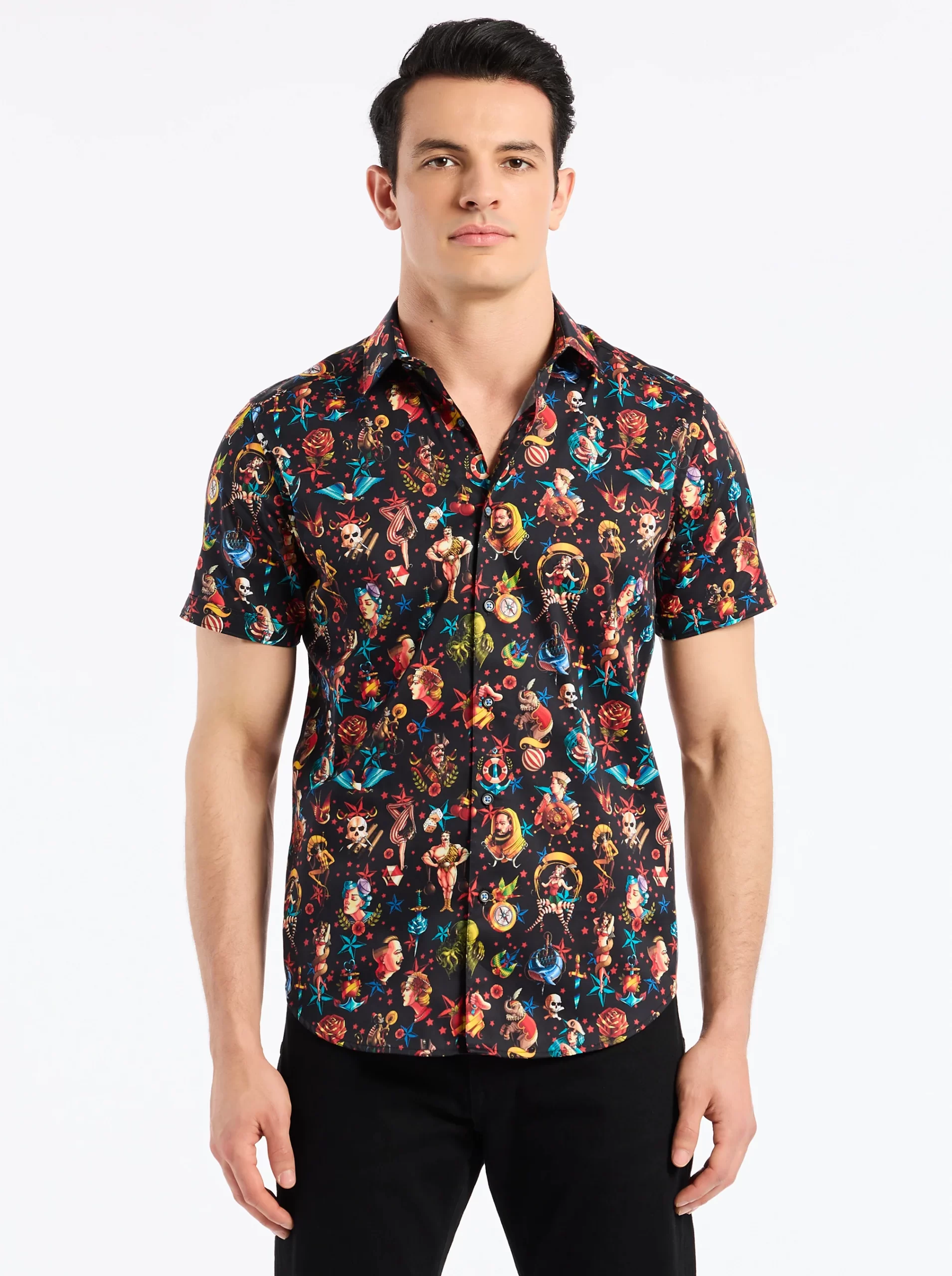 Robert Graham Men’s Carni Short Sleeve Button Down Shirt | Black