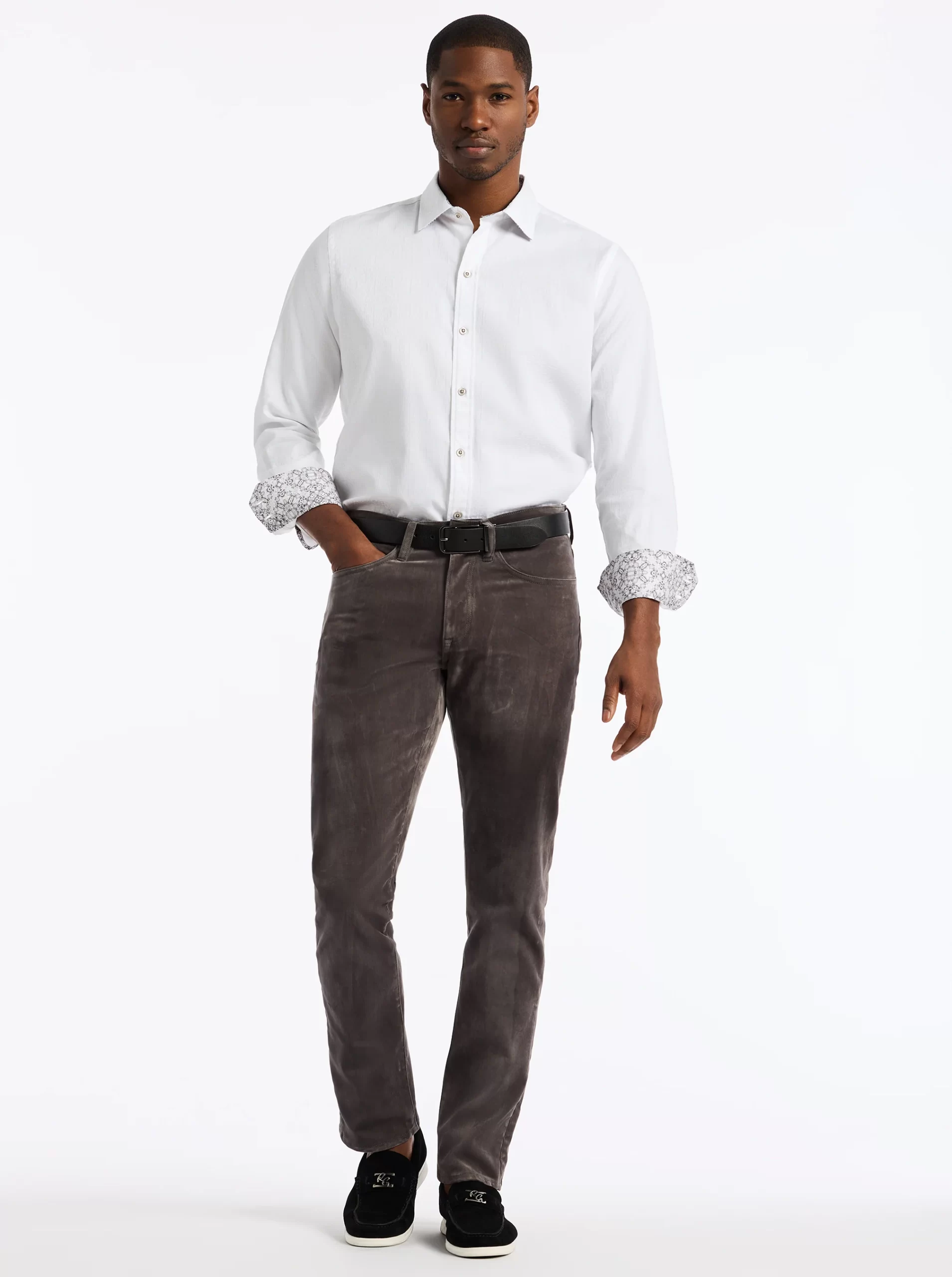 Crafted from a sophisticated fabric that features a subtle luster, the Celestial pant is a chic upgrade to your favorite denim. Tailored for a flattering fit while maintaining remarkable comfort, they pair perfectly with everything from a formal blazer to a trendy button down. Don’t miss the interior contrast print for that special RG touch.