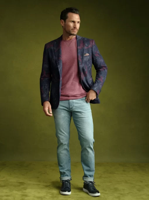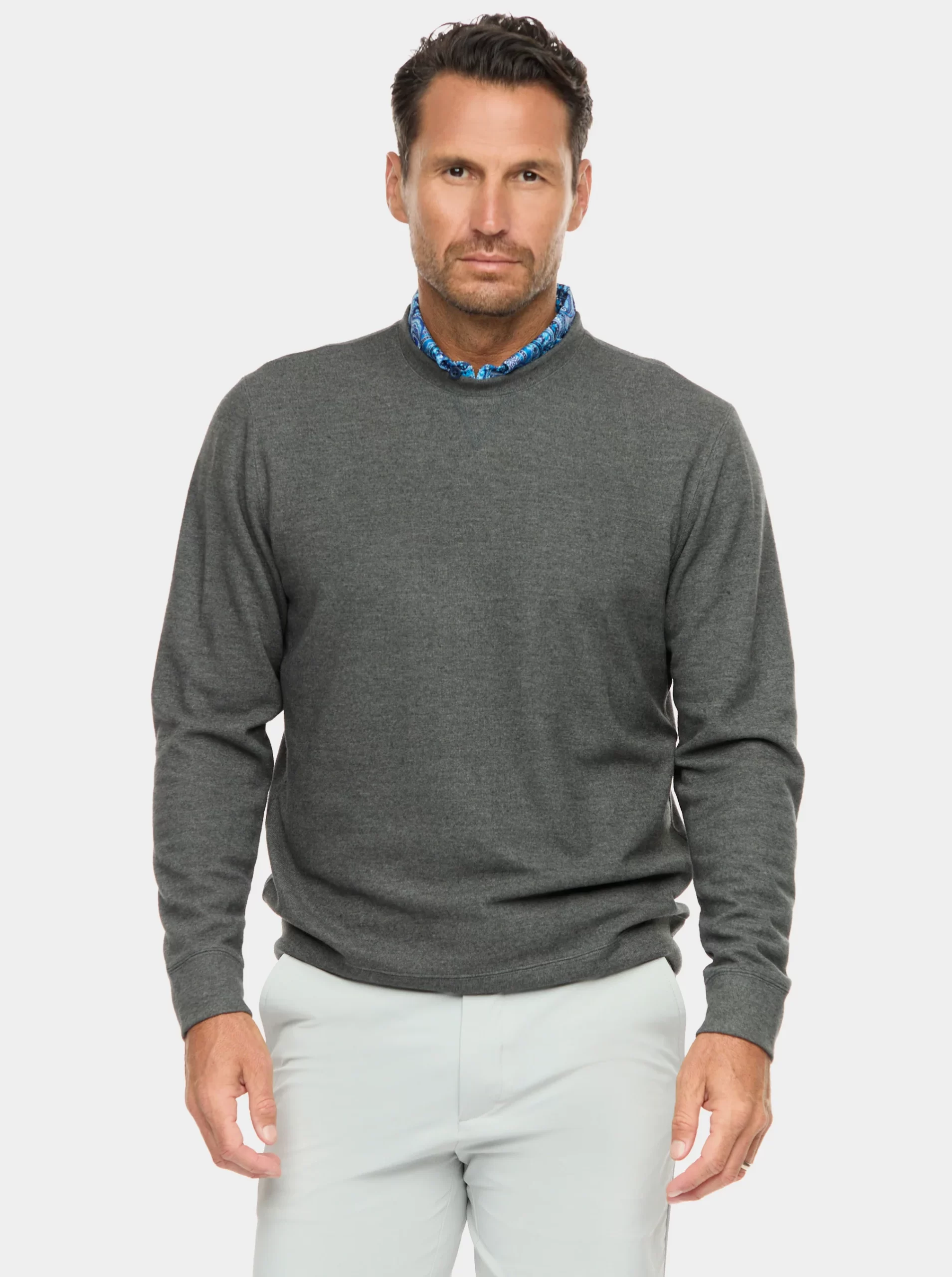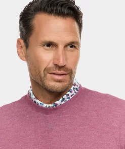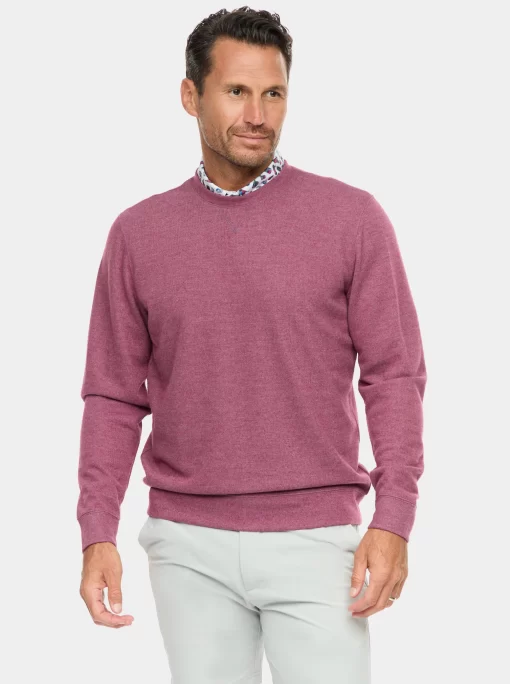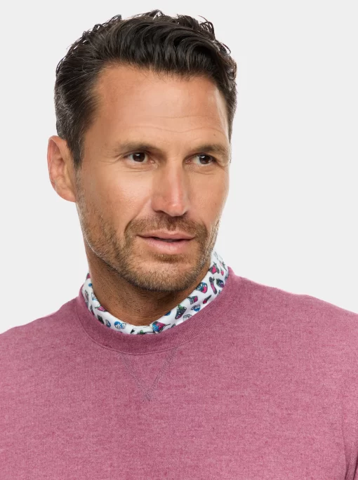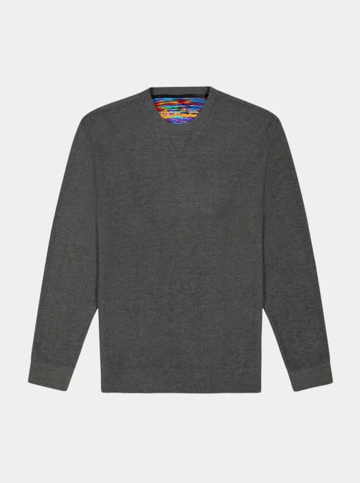 Feel relaxed while looking put-together in this ultra-soft crew neck knit. Notice the vibrant space dye print at the back yoke and the v-stitch at the neckline. Layer under a blazer for a more polished look, or wear on its own for a more casual vibe.