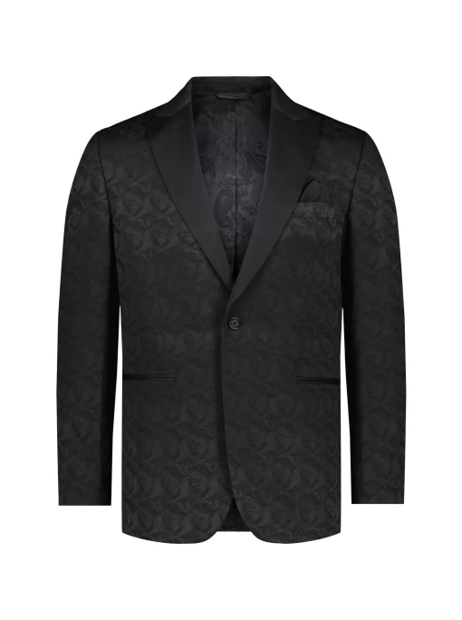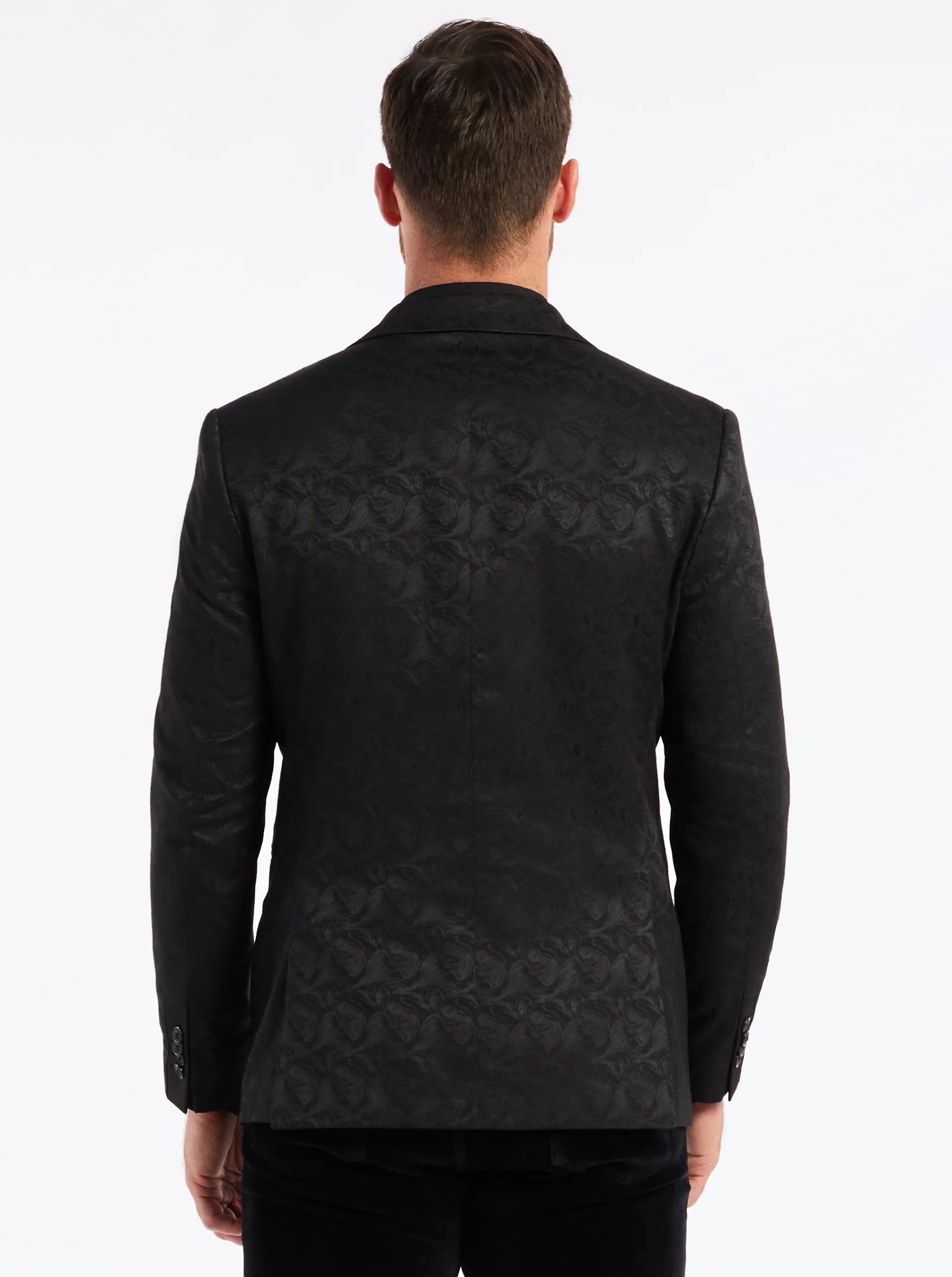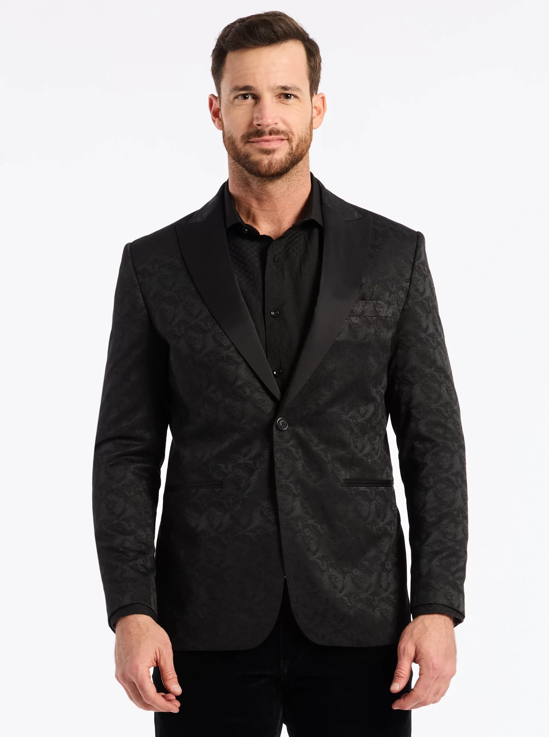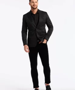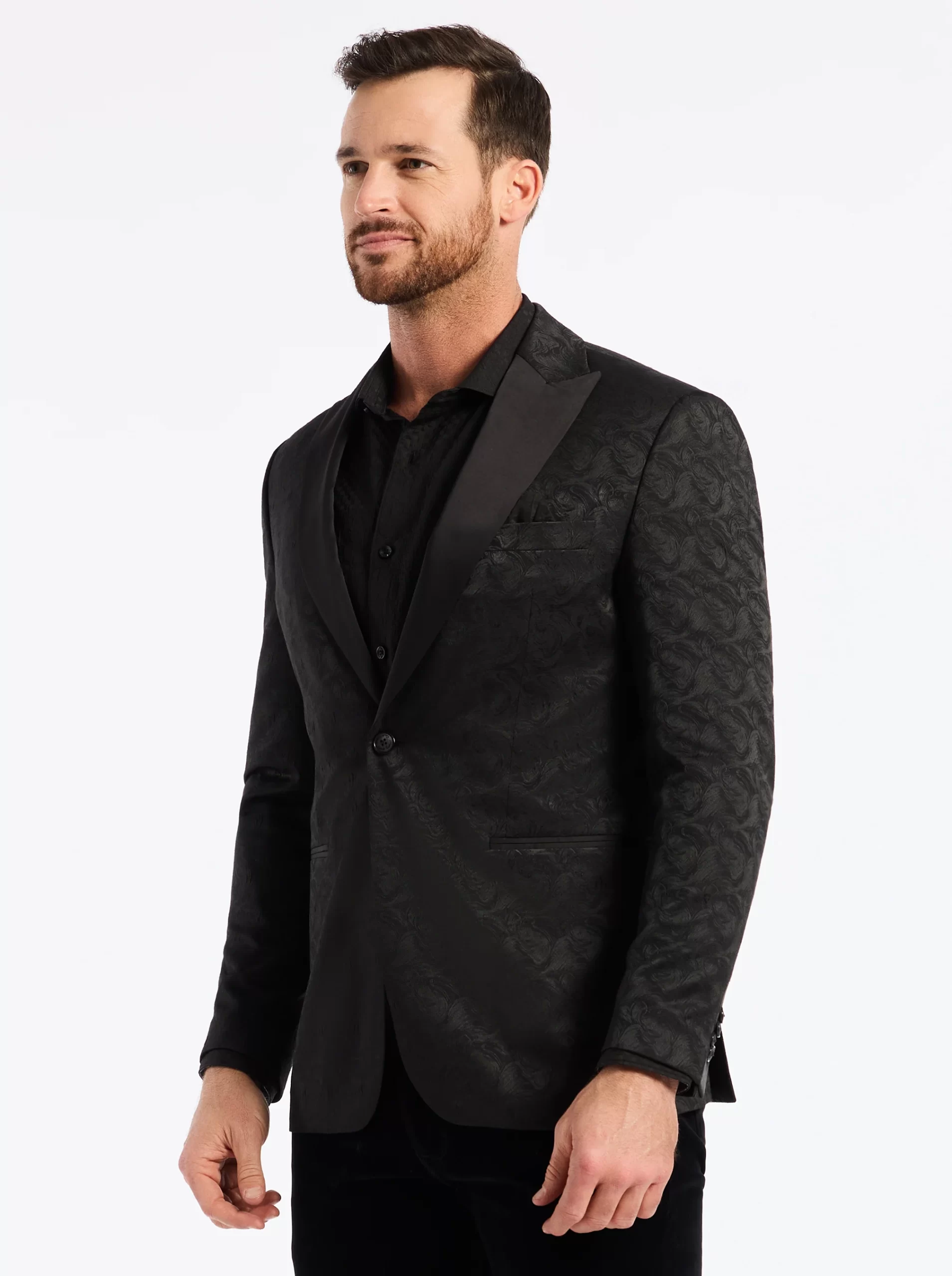 This elegant blazer is ready for a night out on the town. Part of Robert Graham’s “Red Carpet” collection, this red-carpet-worthy piece is the perfect choice for any special occasion. Its tonal pattern, evoking the grace of floating feathers, catches the light with a subtle sheen, while the solid-colored lapel adds an additional layer of elegance. A tonal paisley pull-out pocket square, perfectly matching the full interior lining, provides a stylish touch to this already standout blazer. This style is slightly fitted. It is tailored for a closer-to-the-body fit, with all the RG personality you expect.