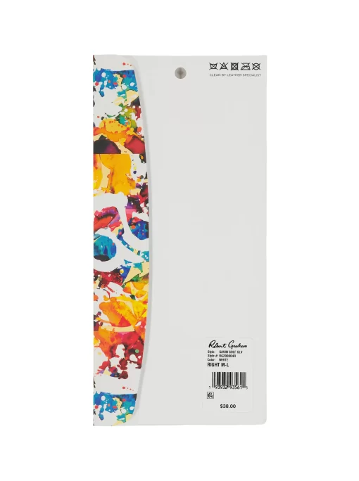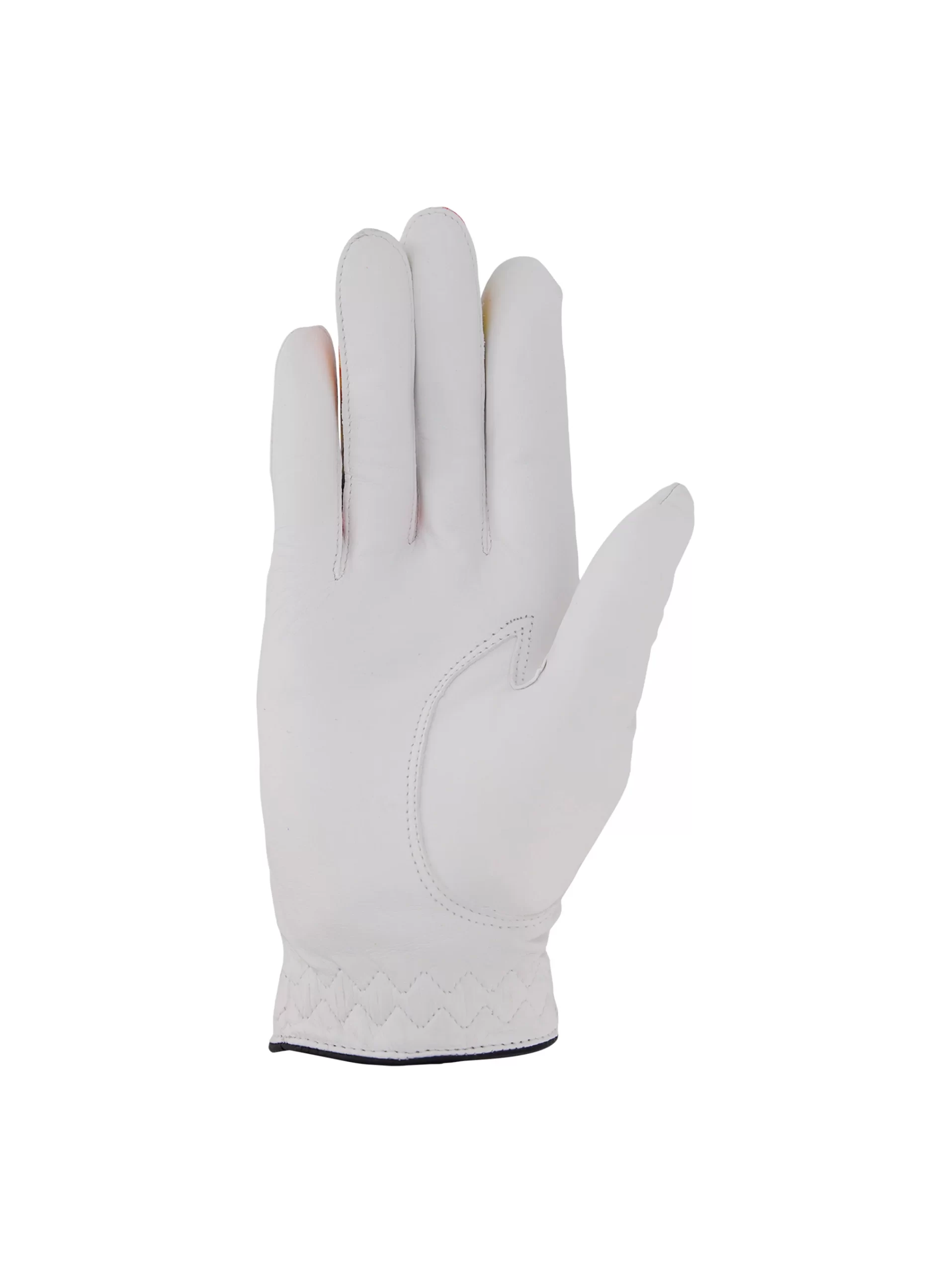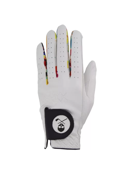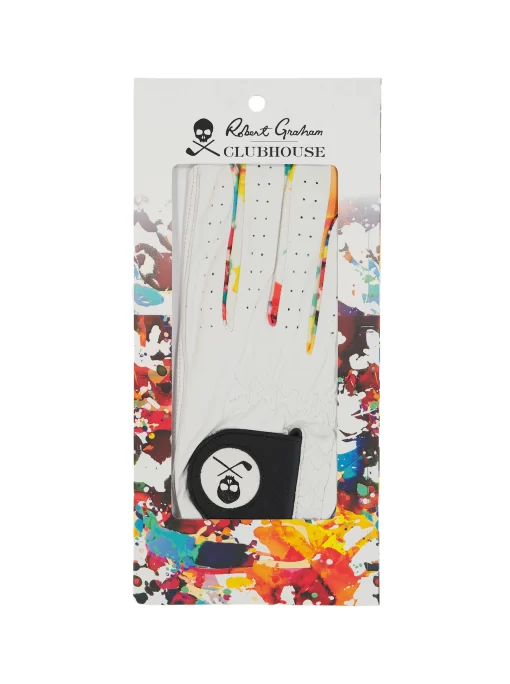 Transform your golf game and command attention on the green with the Robert Graham golf glove. At the fingers, vibrant multi-colored patterns infuse personality into every swing, while strategic perforation brings cool, breathable comfort throughout your round. The adjustable black tab, featuring the iconic RG Clubhouse skull, ensures a customizable fit for optimal performance. Engineered to deliver exceptional grip and control, this premium glove makes a bold statement from the first drive to the final putt.