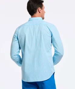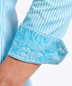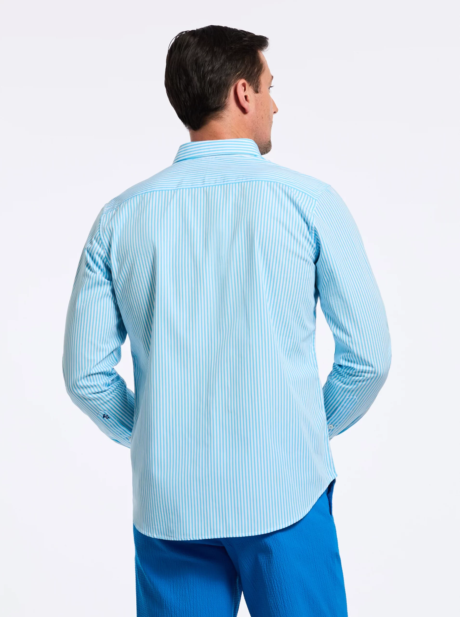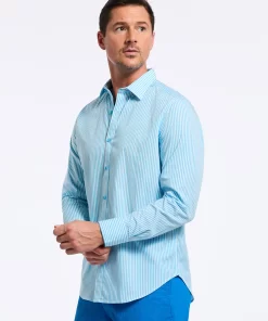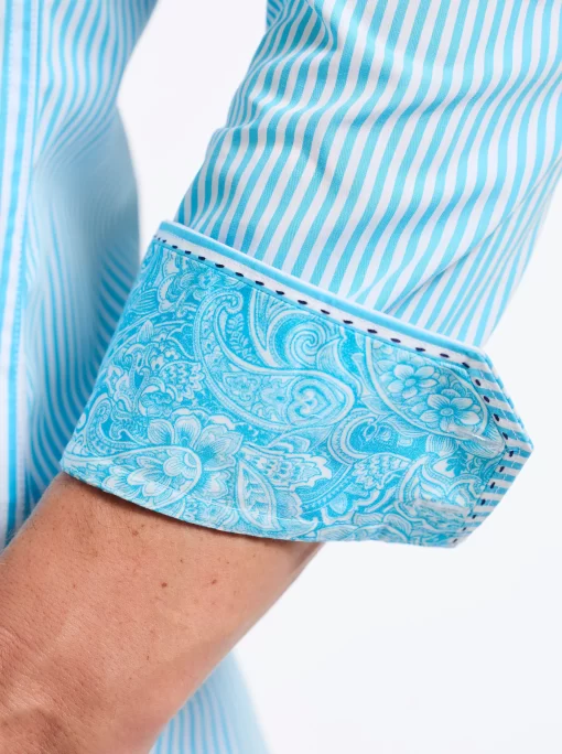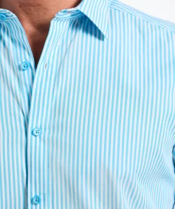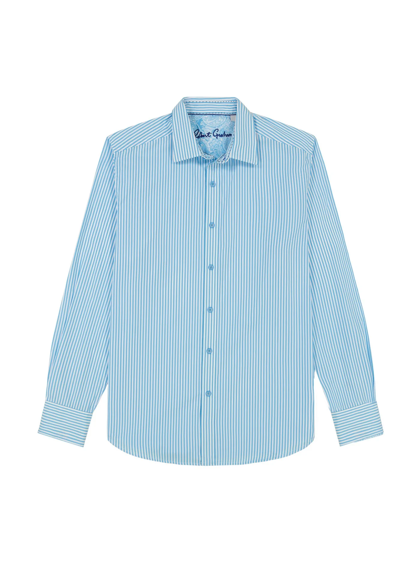 This isn’t your average striped shirt. Crafted from luxurious yarn-dye fabric, it boasts a depth of color and a unique texture that sets it apart. The complementary contrast print adds that signature RG style. This style is slightly fitted. It is tailored for a closer-to-the-body fit, with all the RG personality you expect.