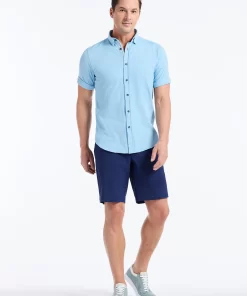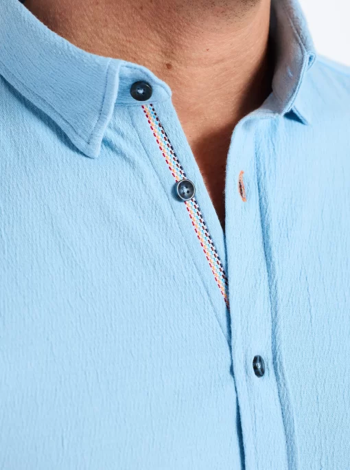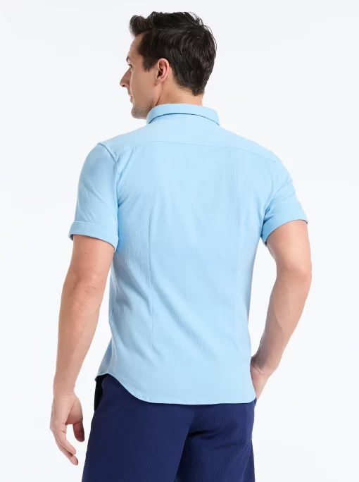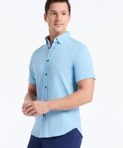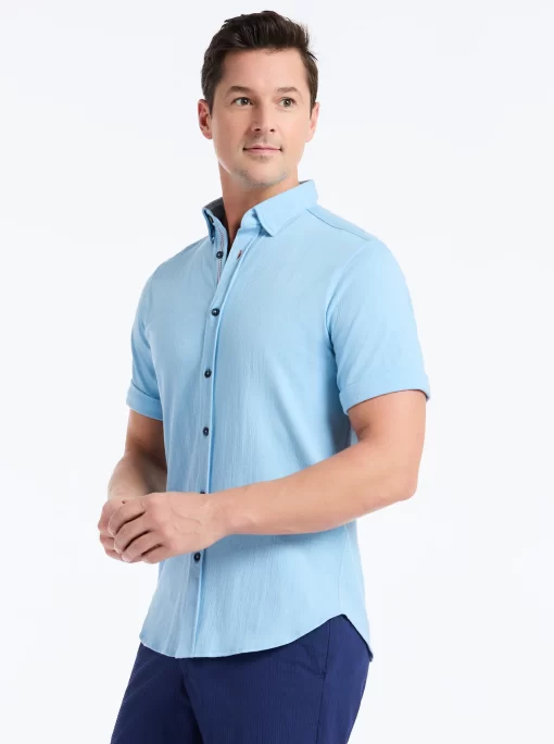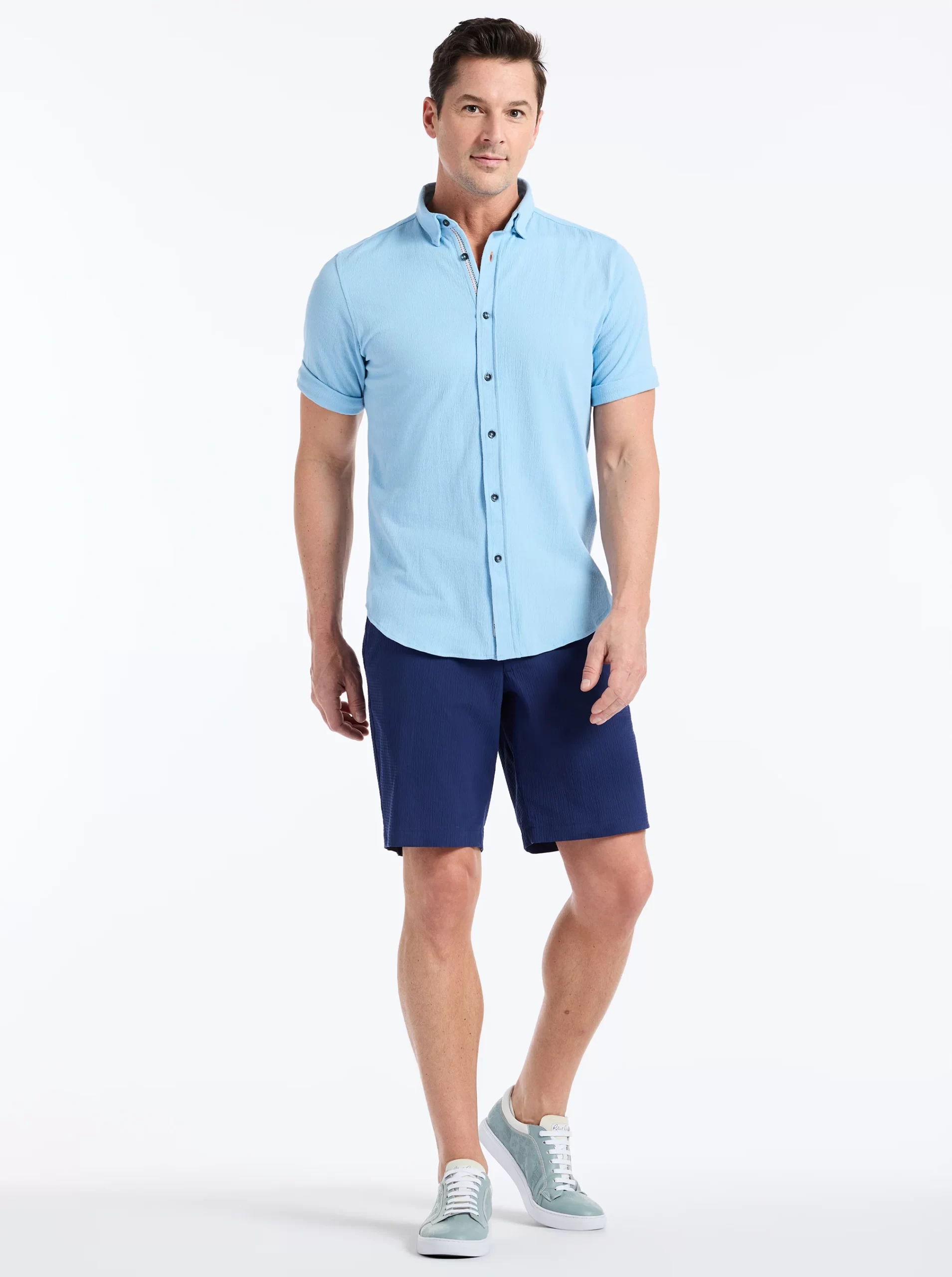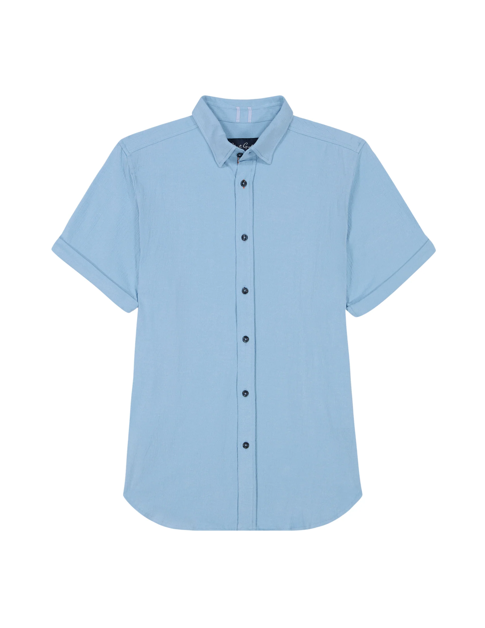 This is not your basic button down. Come in for a closer look and notice that this solid-hued style is begging you to touch the wavy textured fabric. You’ll love the beachy feel that is at once laidback and dressed up. Pair with your favorite chinos to complete the look. This style is slightly fitted. It is tailored for a closer-to-the-body fit, with all the RG personality you expect.