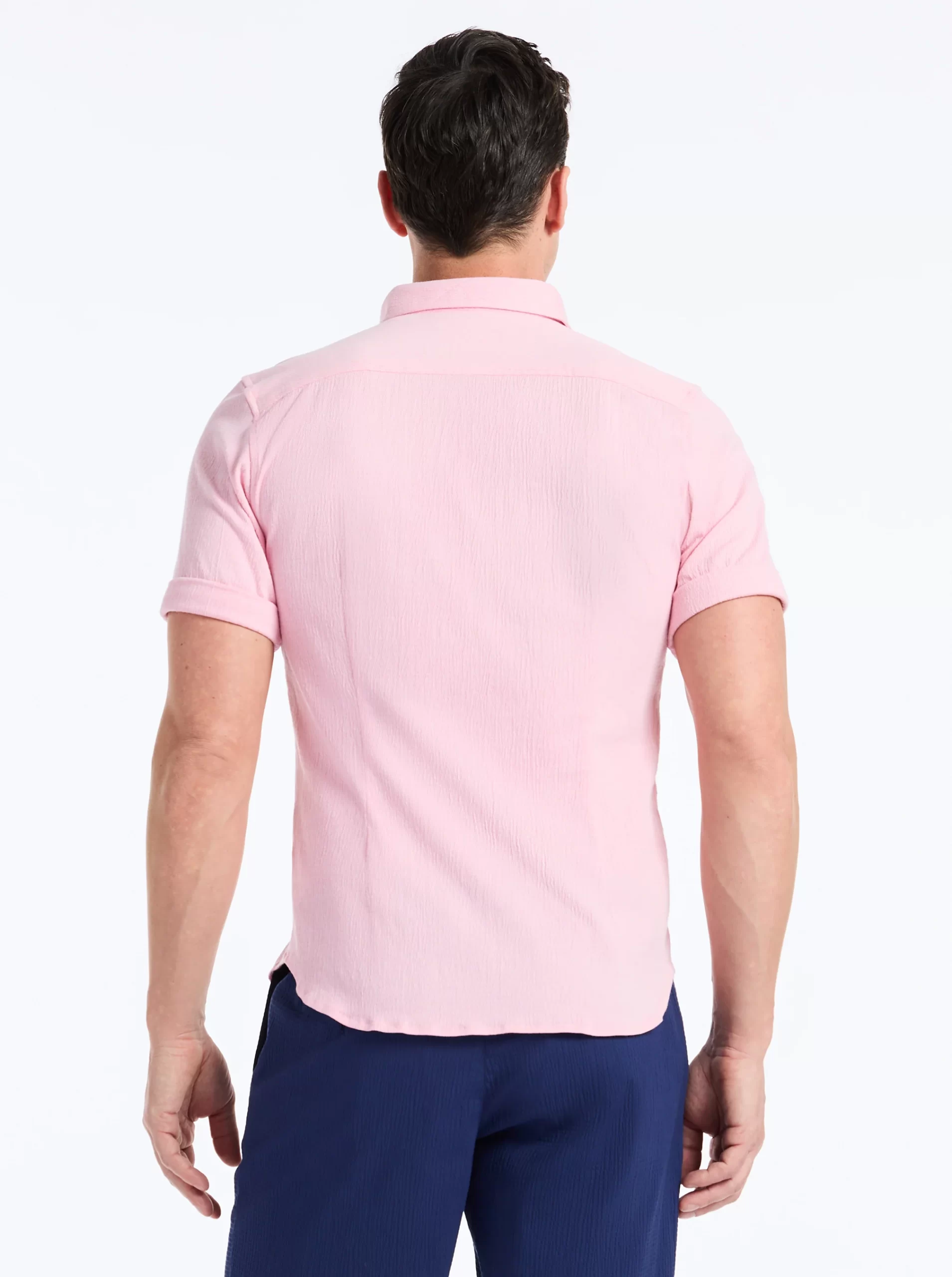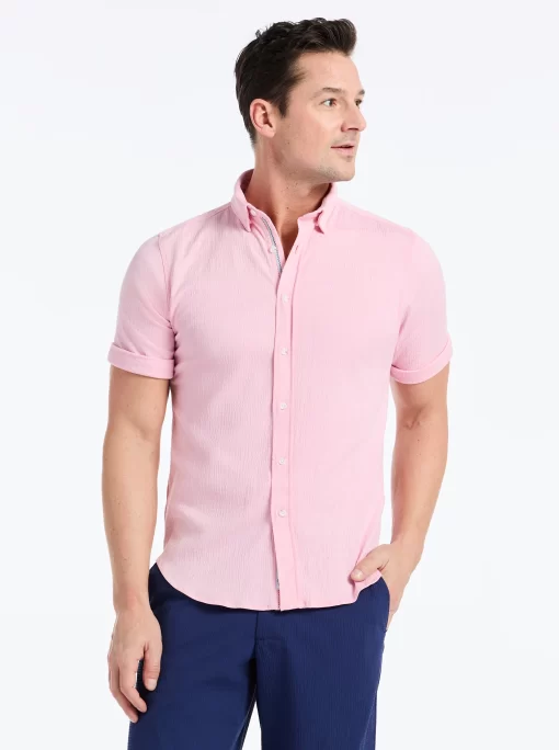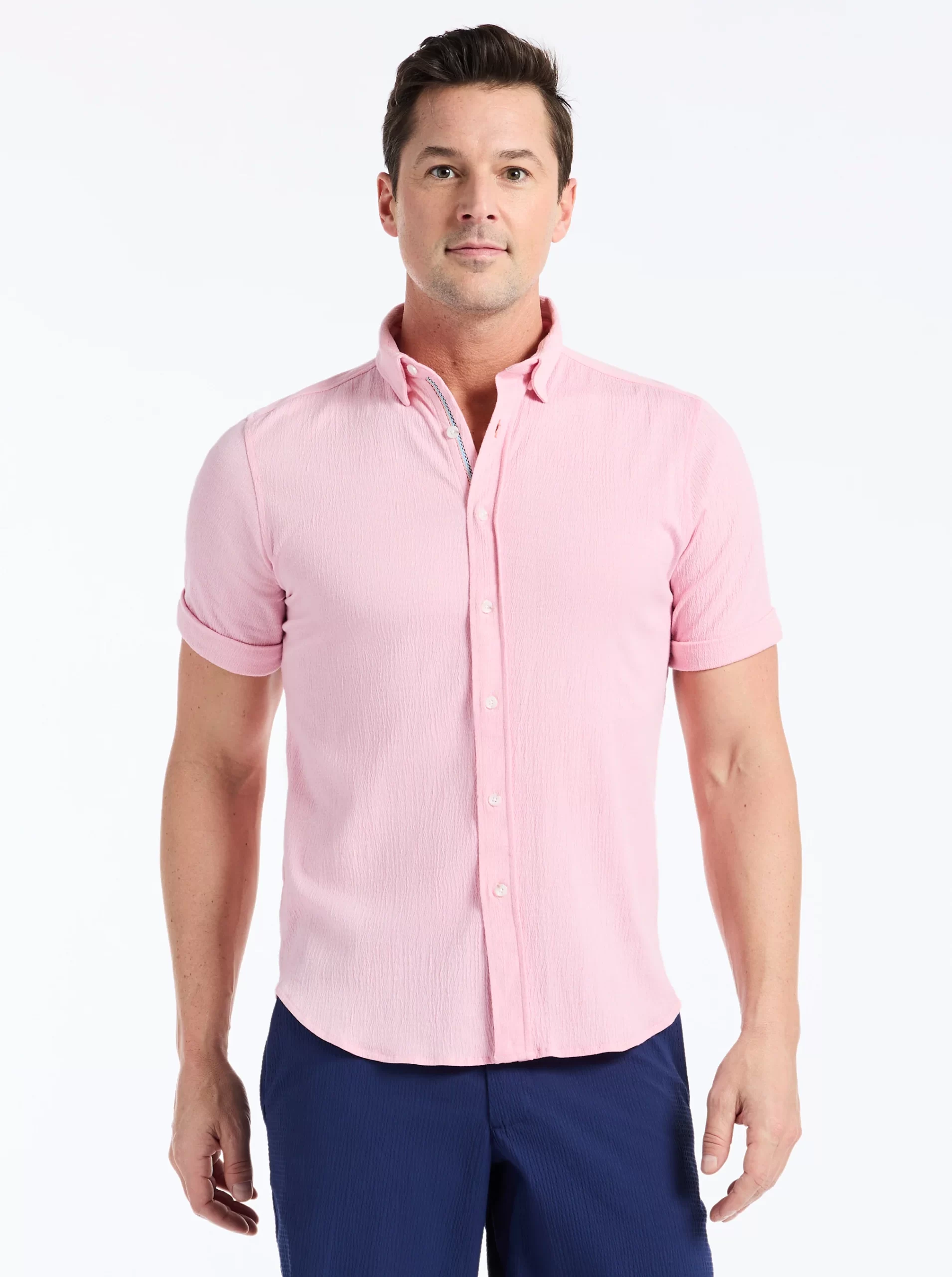 This is not your basic button down. Come in for a closer look and notice that this solid-hued style is begging you to touch the wavy textured fabric. You’ll love the beachy feel that is at once laidback and dressed up. Pair with your favorite chinos to complete the look. This style is slightly fitted. It is tailored for a closer-to-the-body fit, with all the RG personality you expect.
