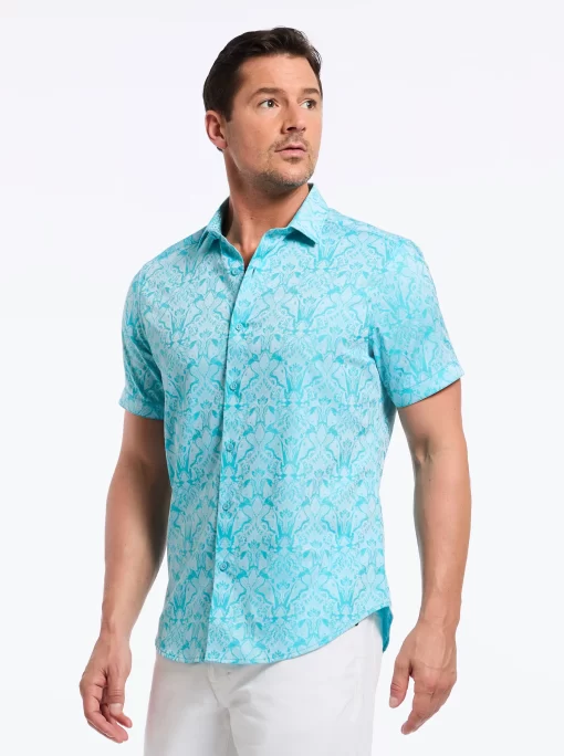 Robert Graham Men’s Highland Short Sleeve Button Down Shirt | Seafoam