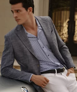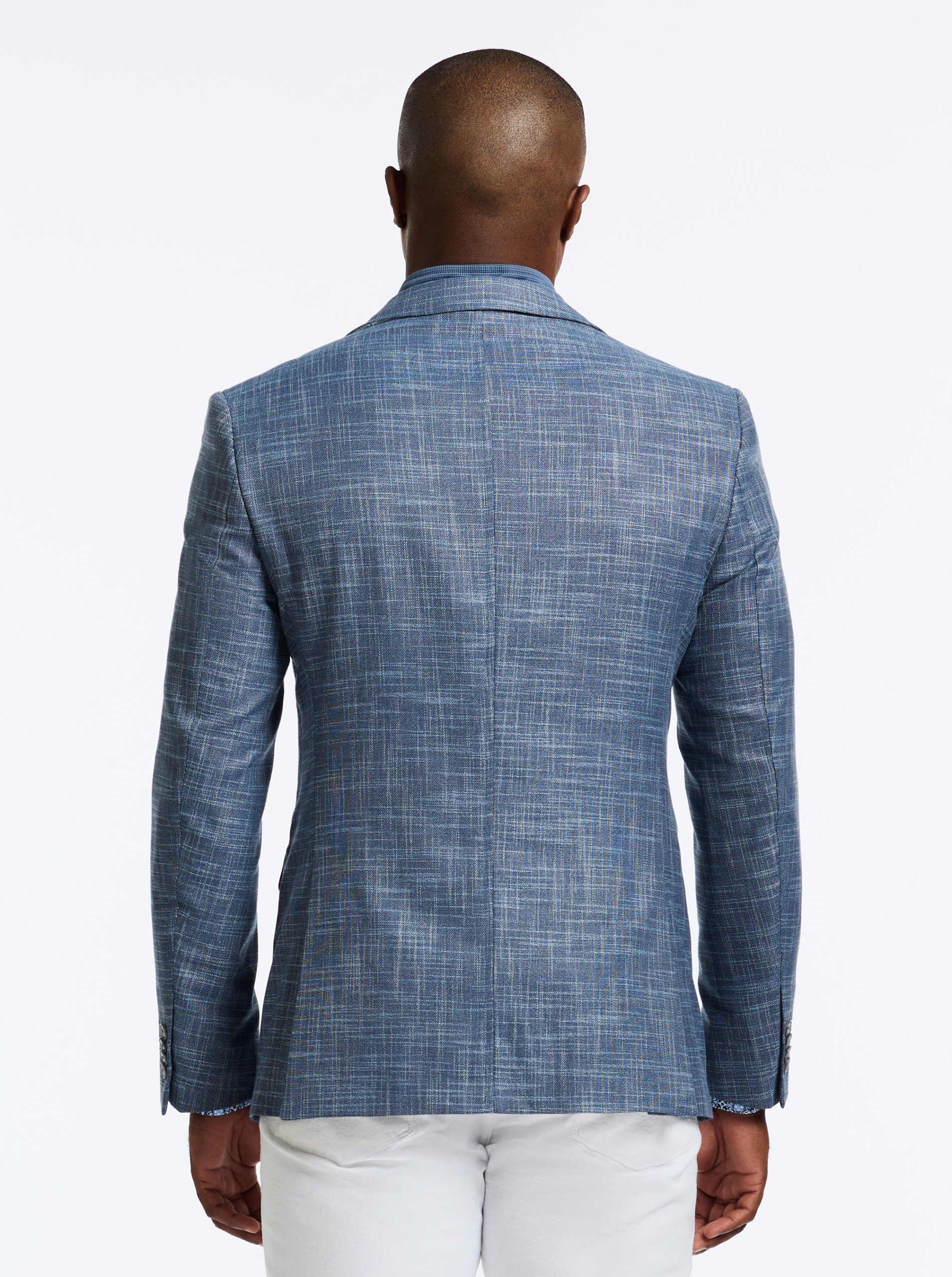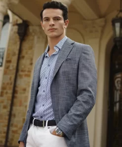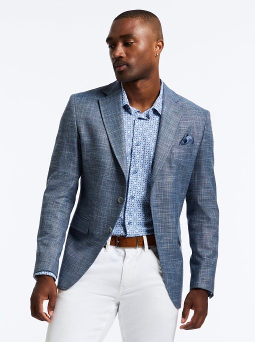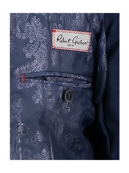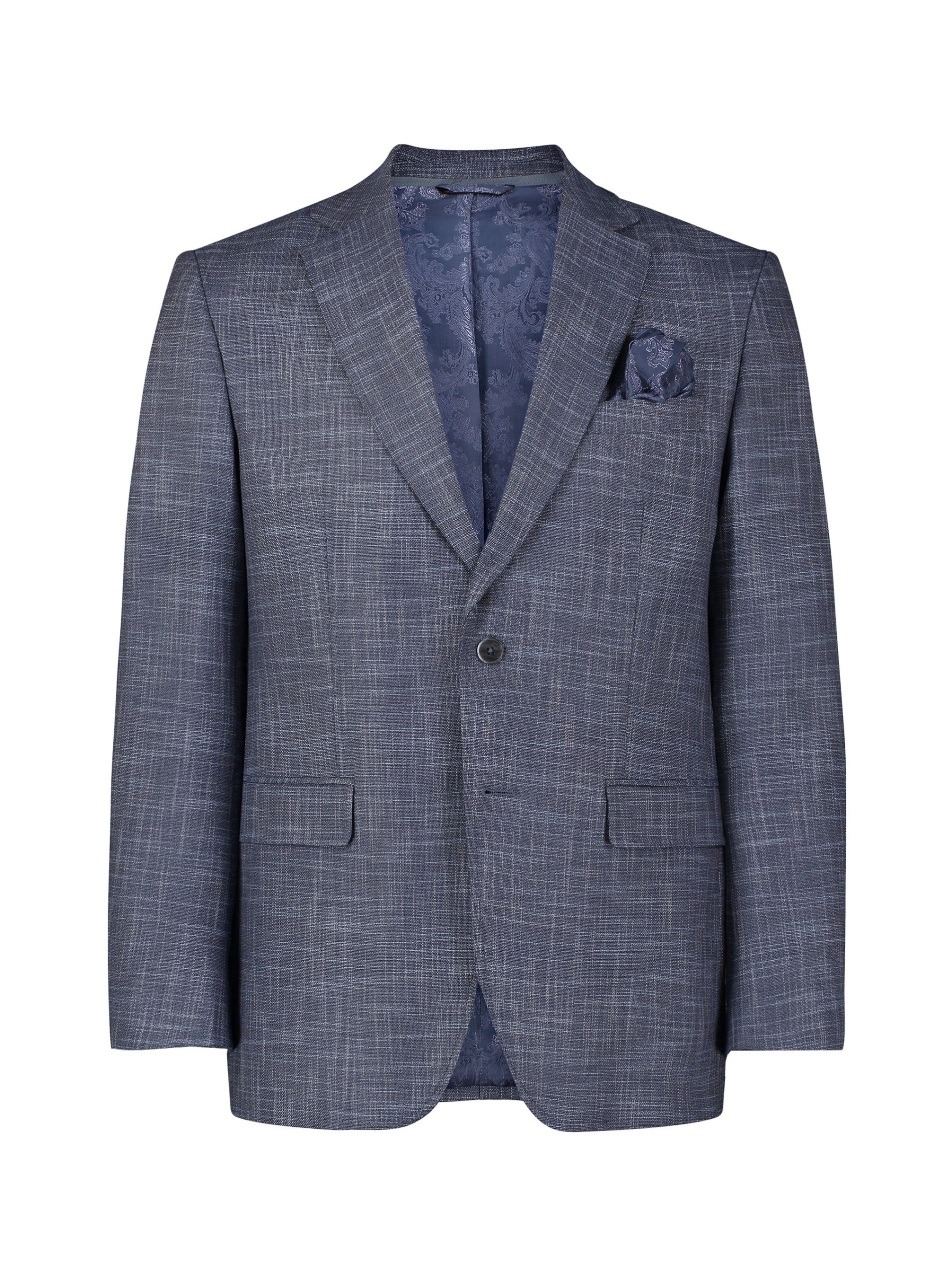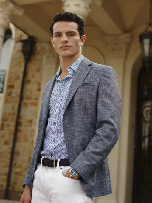 Don’t miss the elevated details of the Jetset VII blazer. An elegant crosshatch exterior style provides a stylish contrast to the solid blue of the interior zip-out bib. Leave the bib in for an added layer or zip it out on warmer days. Inside, notice a sophisticated tonal paisley jacquard lining, the twin to the pullout pocket square at the exterior.