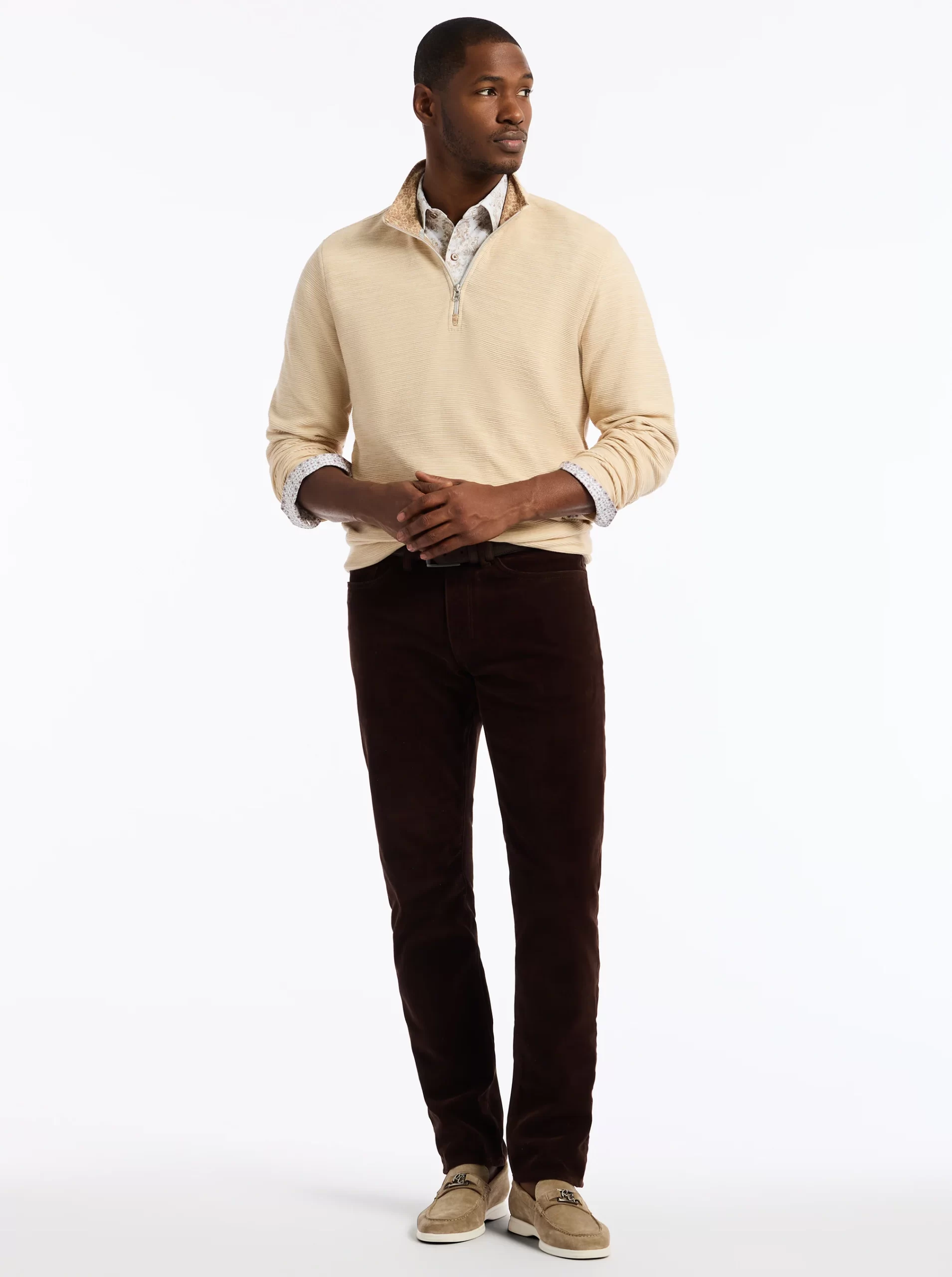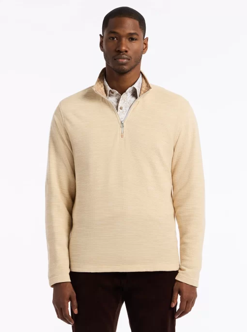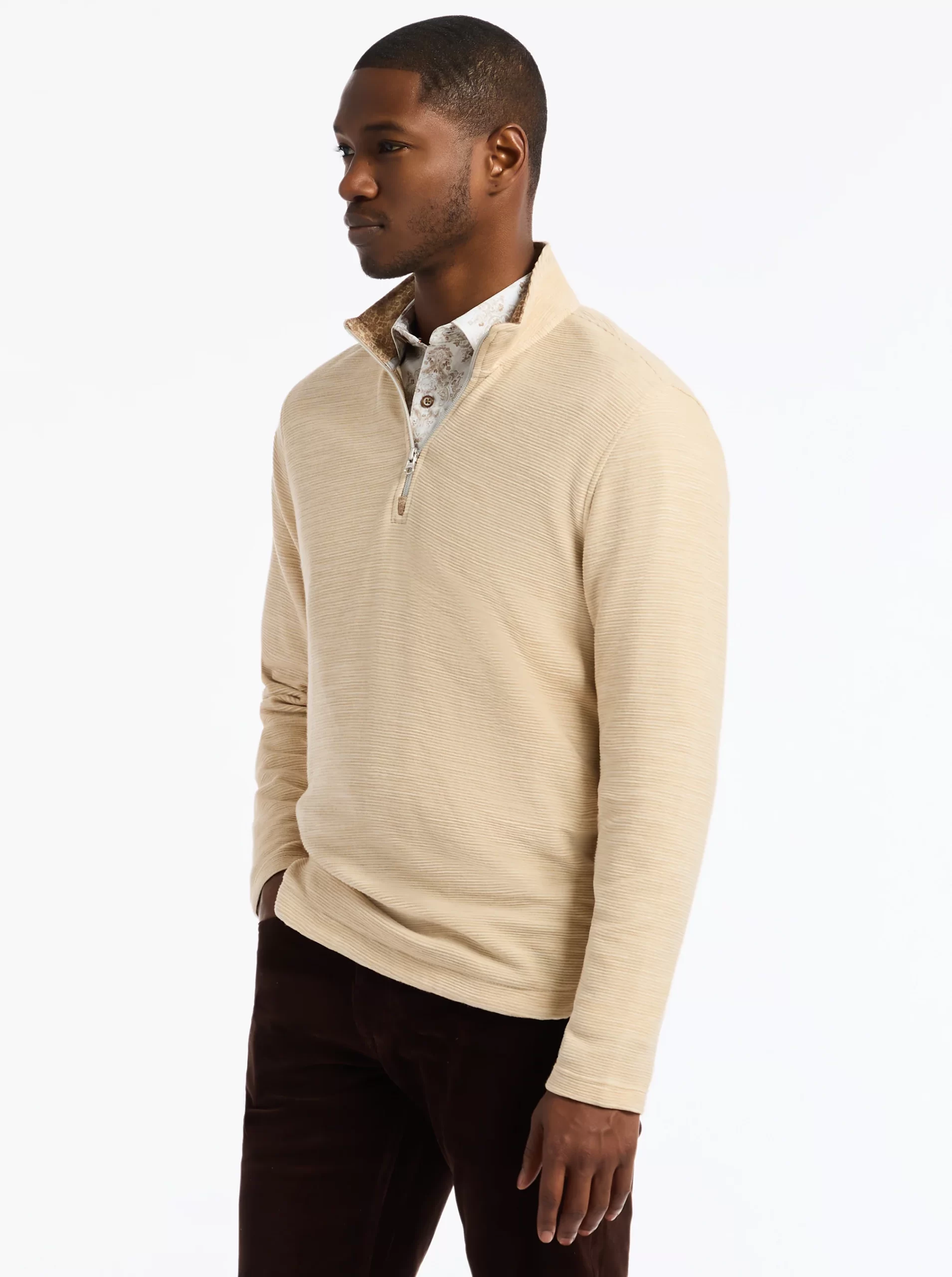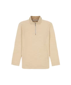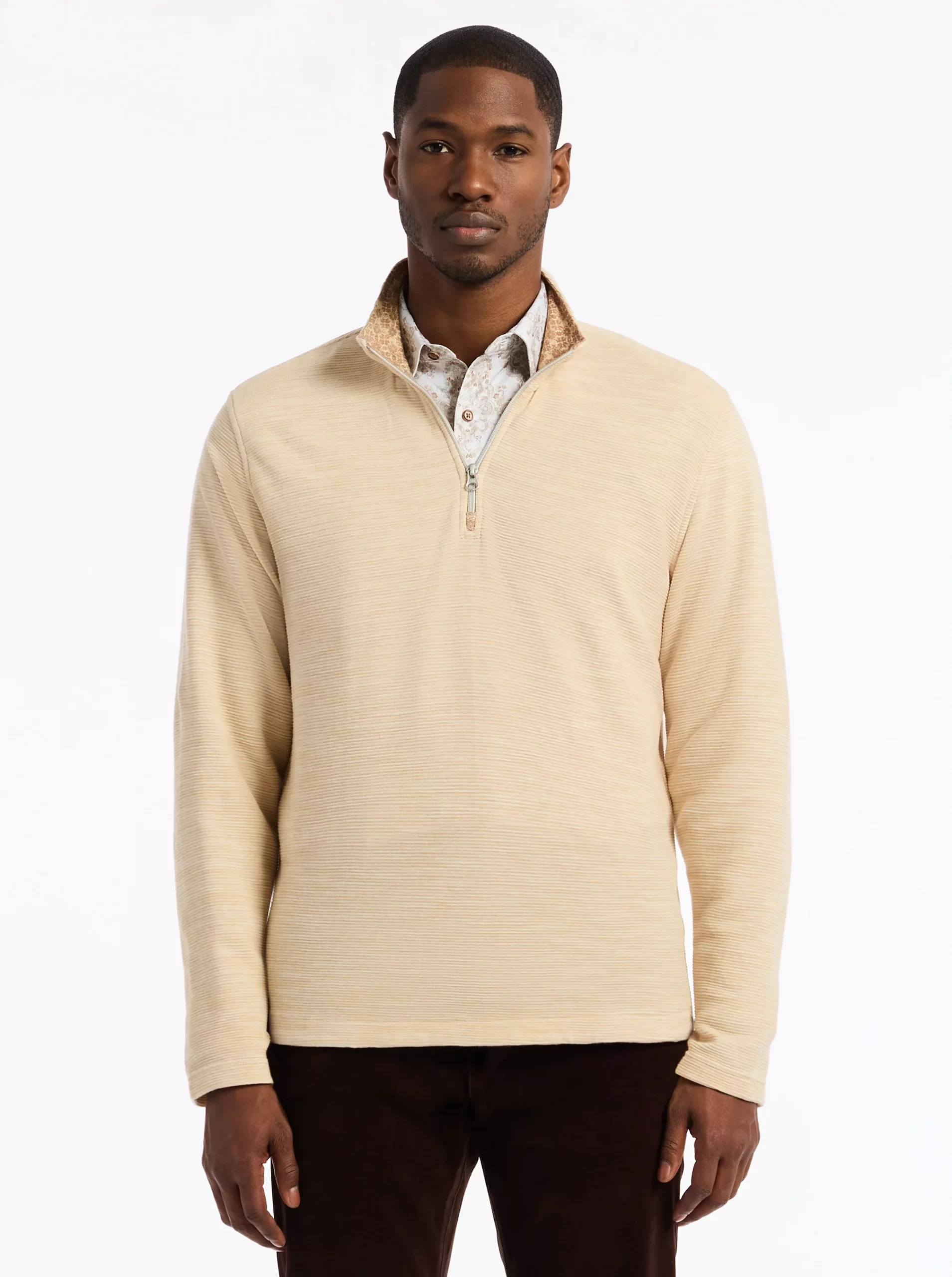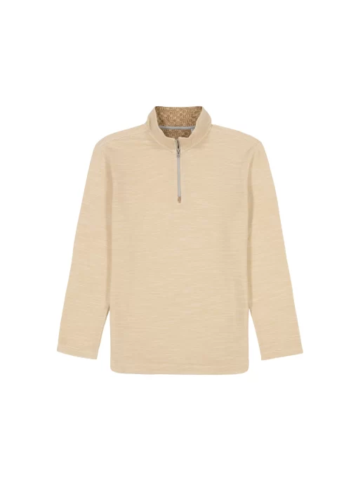 A quarter zip in space dye cotton is the staple that will leave you feeling relaxed while looking put-together. With a flattering silhouette in touchable soft fabric, this style is perfect for pairing with your favorite denim. A vibrant pattern along the interior and a matching contrast zipper adds the perfect finishing touches.