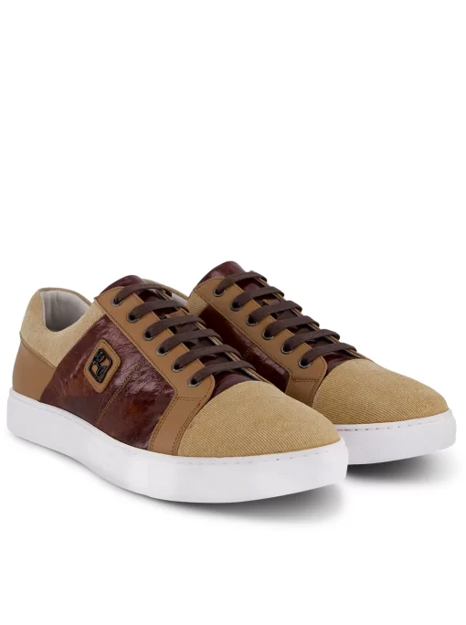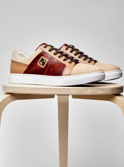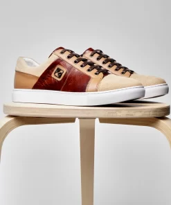 Casual yet stylish sneakers in sleek colorblock leather add a retro flair to any look. Dress them up or down depending on the occasion.