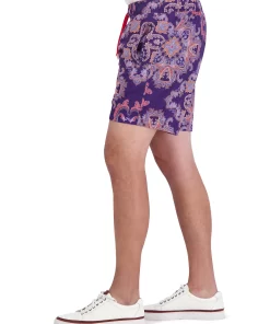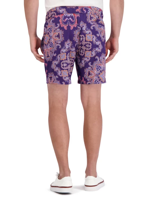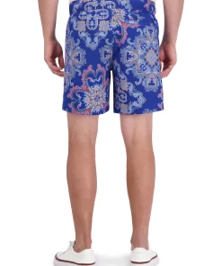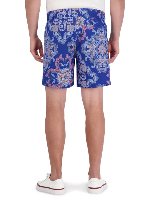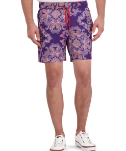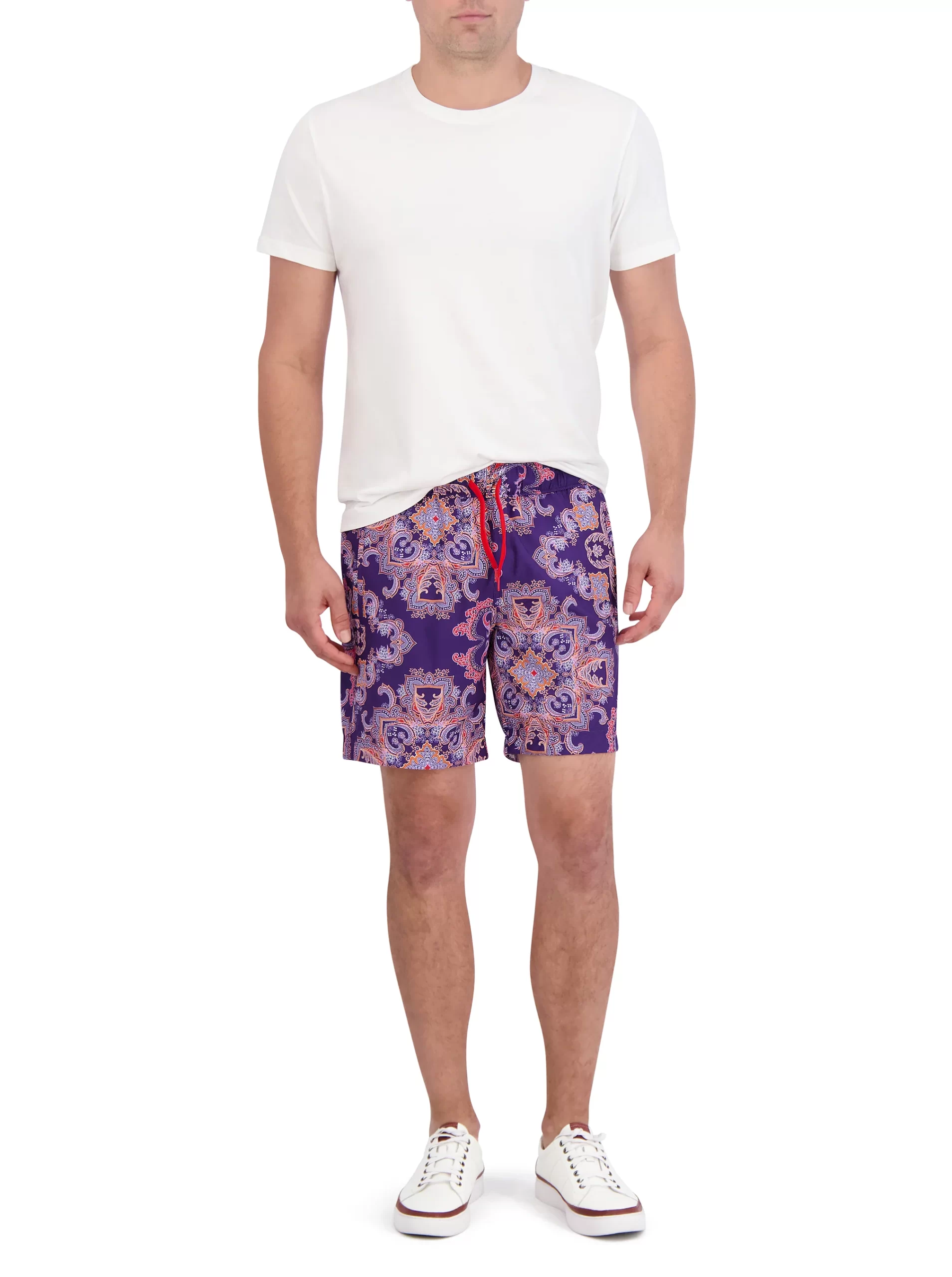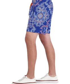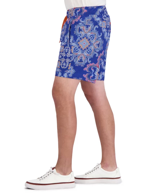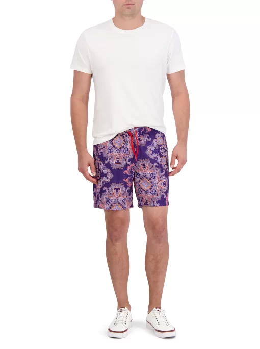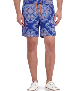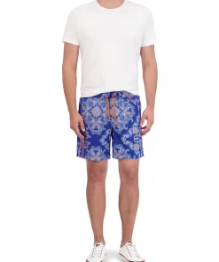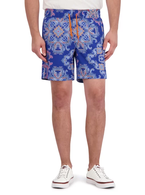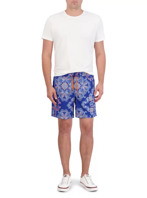 A bold print elevates drawstring swim shorts. You’ll easily go from beach to bar in this chic style. Notice the side pockets for added functionality.