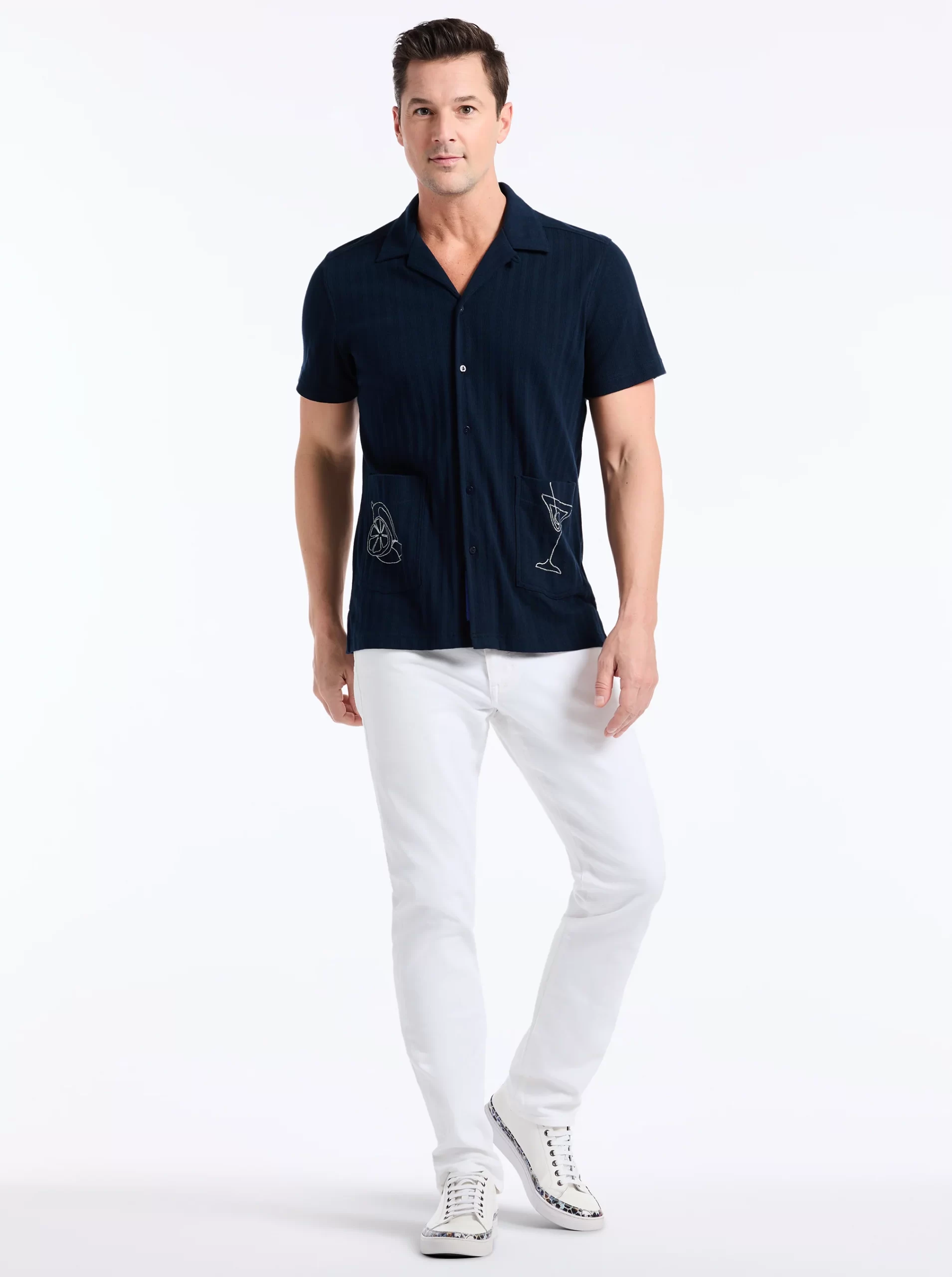 The Madrey top proves that sometimes the simplest details make the biggest statement. Chic silhouettes of afternoon drinks and ingredients at the side seams give this style modern flair. This knit top features two convenient front pockets and a vibrant paisley print at the inside yoke.