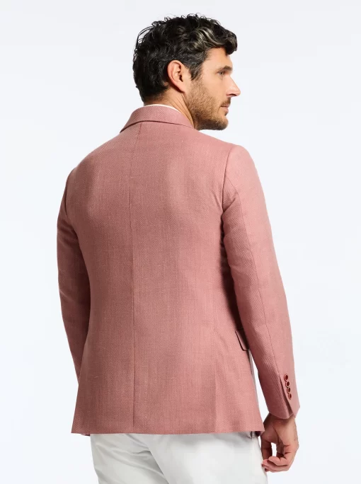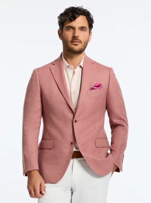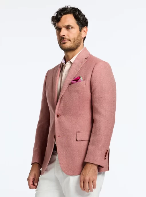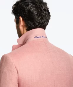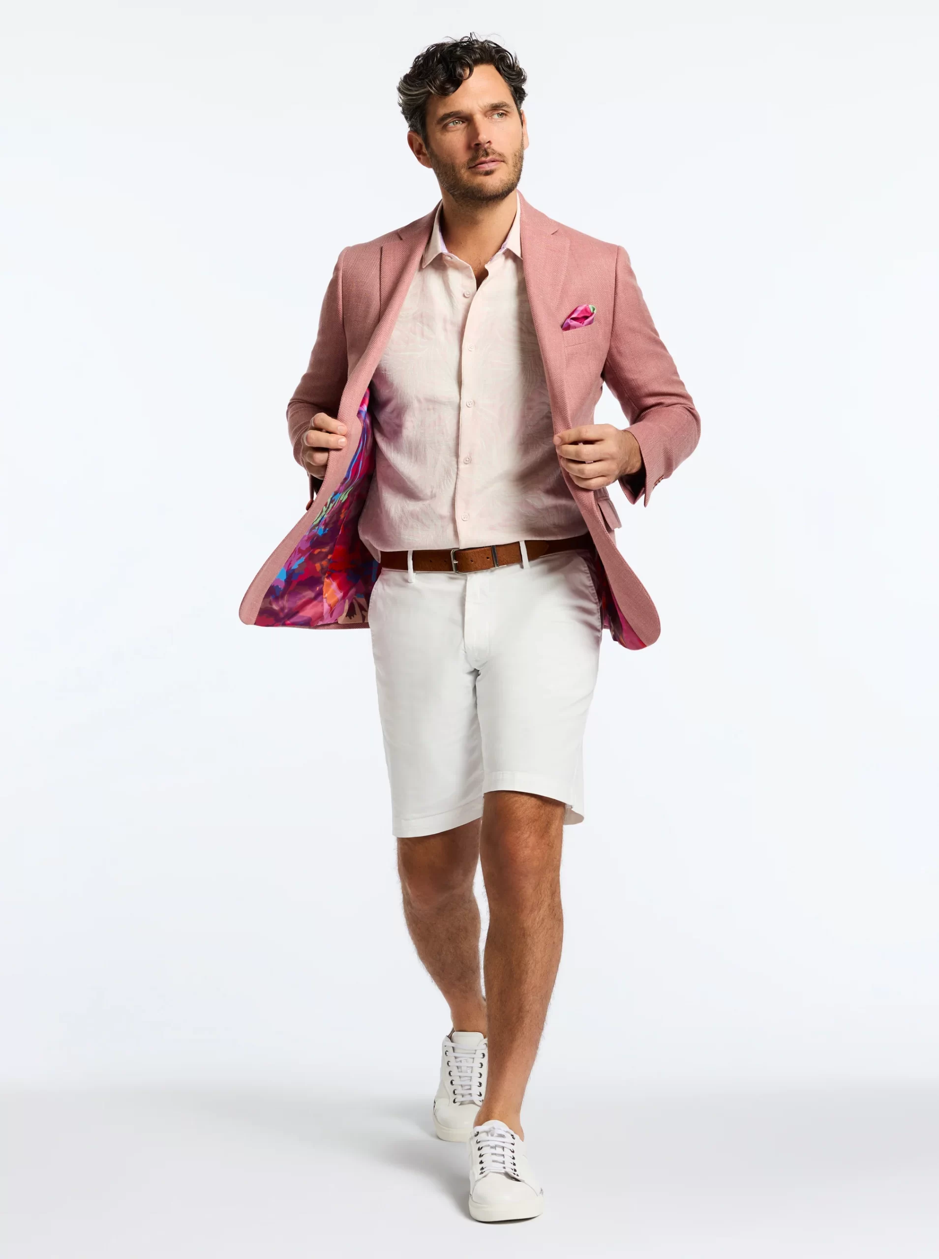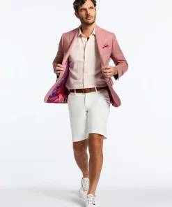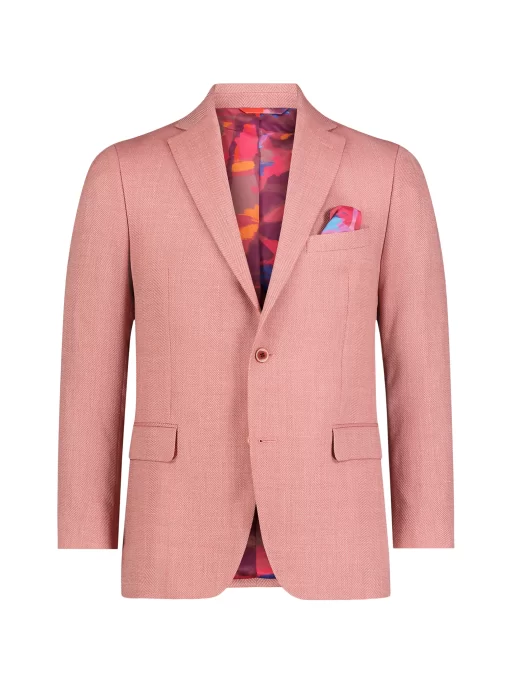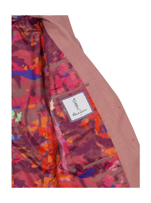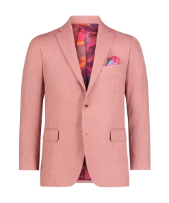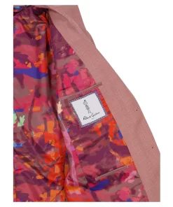 Bring a bold pop of color to your look with this coral blazer. The fun doesn’t stop there. Leave it unbuttoned so everyone can get a peek at the tropical sunset tableau that lines the interior.