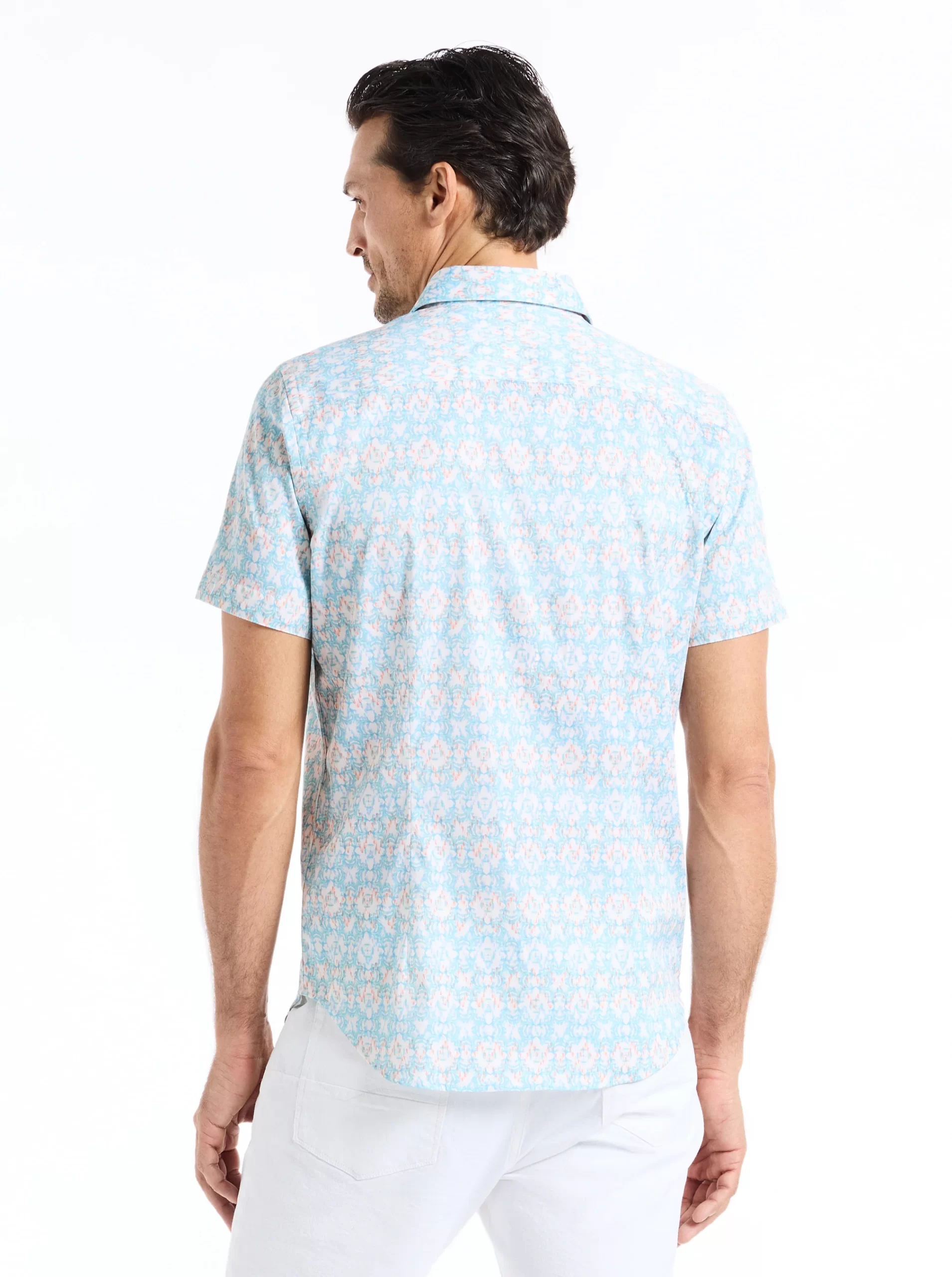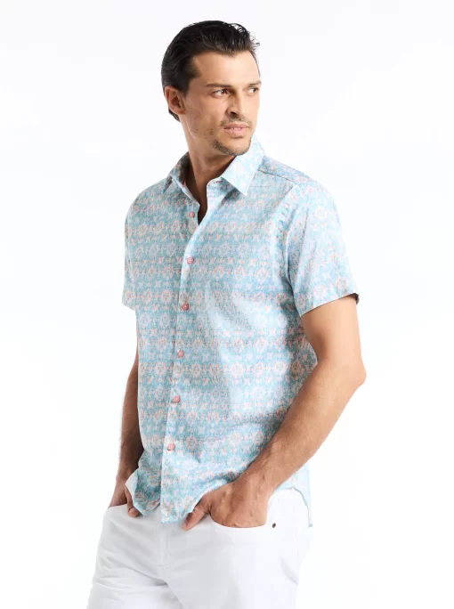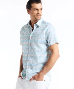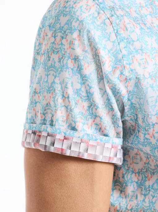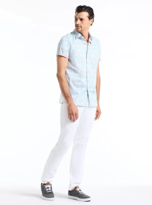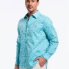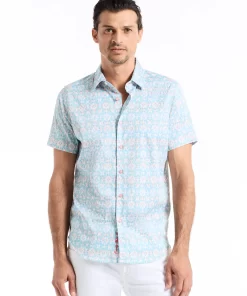 Step back in time with this classic button down. Featuring a retro print in subdued hues, it evokes the charm of a bygone era. A contrast print at the collar and cuffs completes the vintage look. This style is slightly fitted. It is tailored for a closer-to-the-body fit, with all the RG personality you expect.