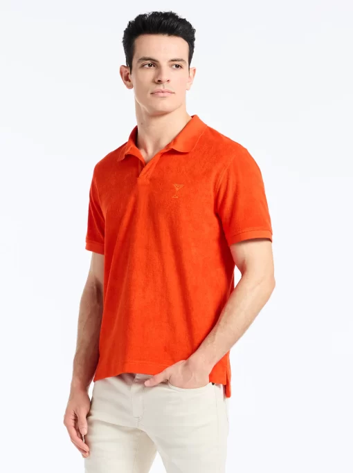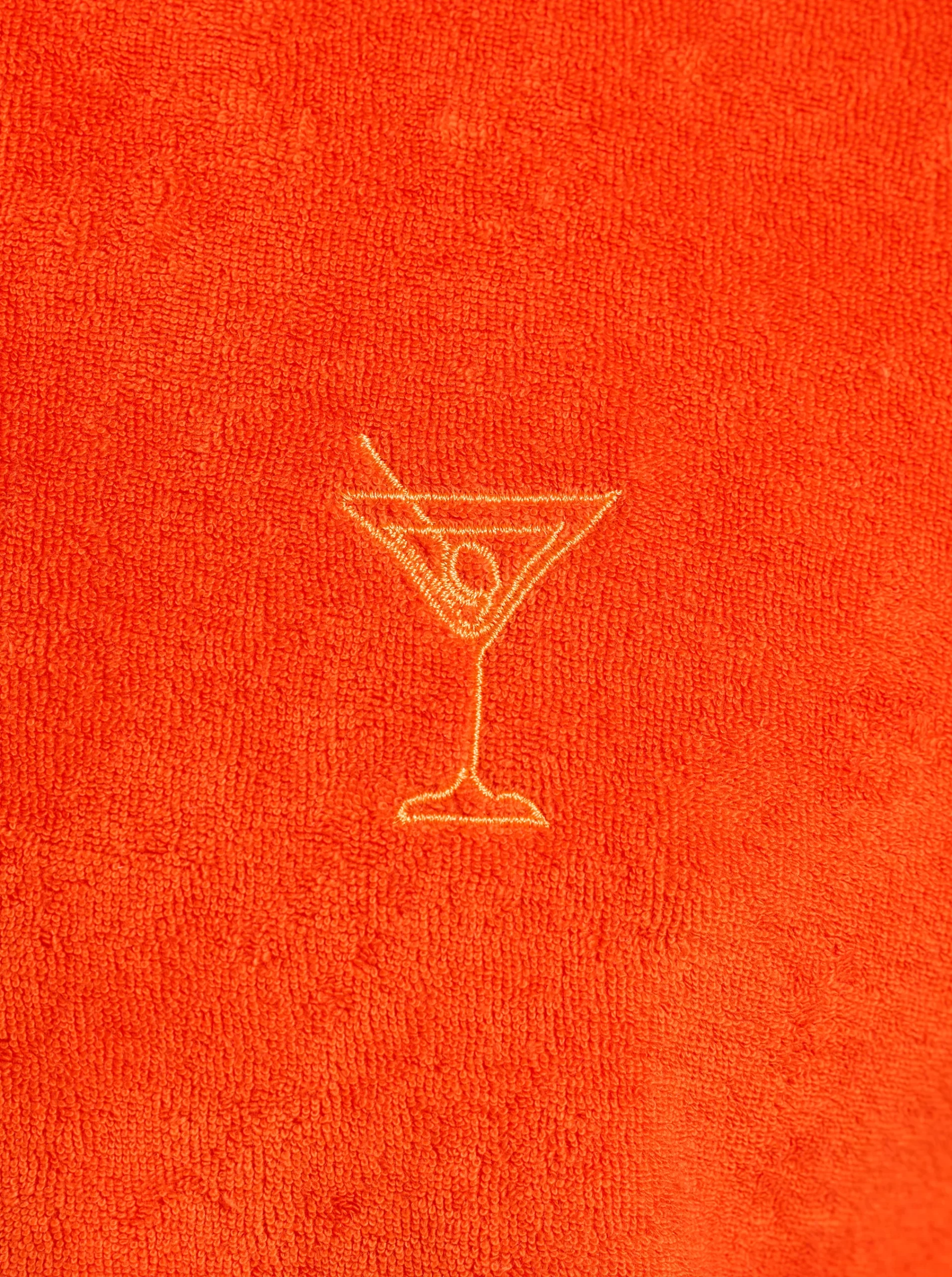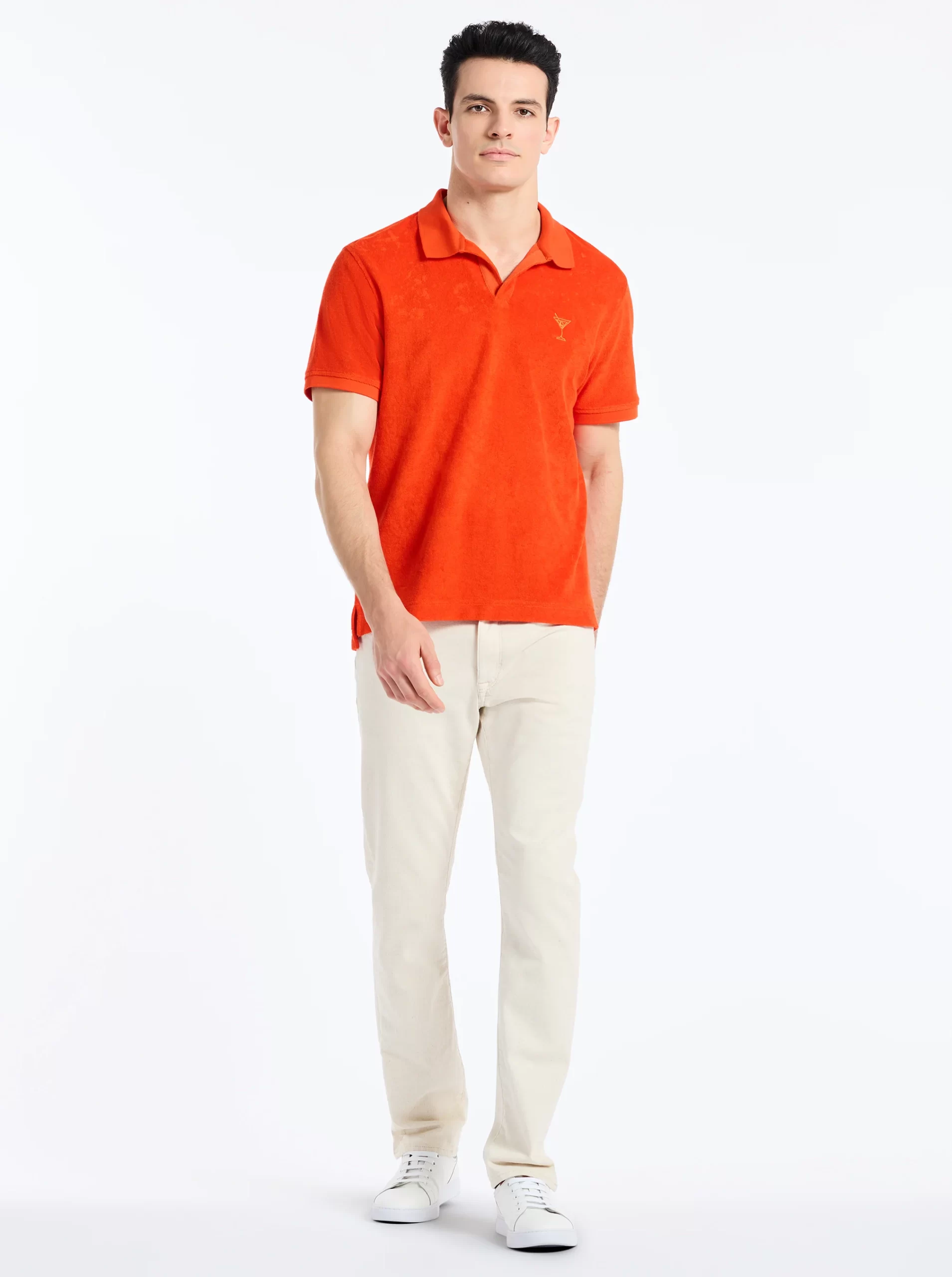 Elevate your summertime look with this luxurious cotton terry polo. A Johnny collar adds instant chic factor, while the embroidered martini glass at the chest adds a touch of RG personality.