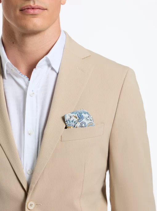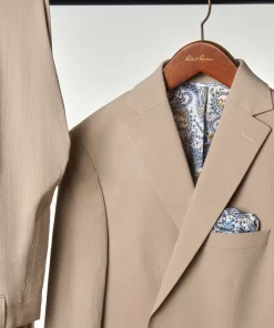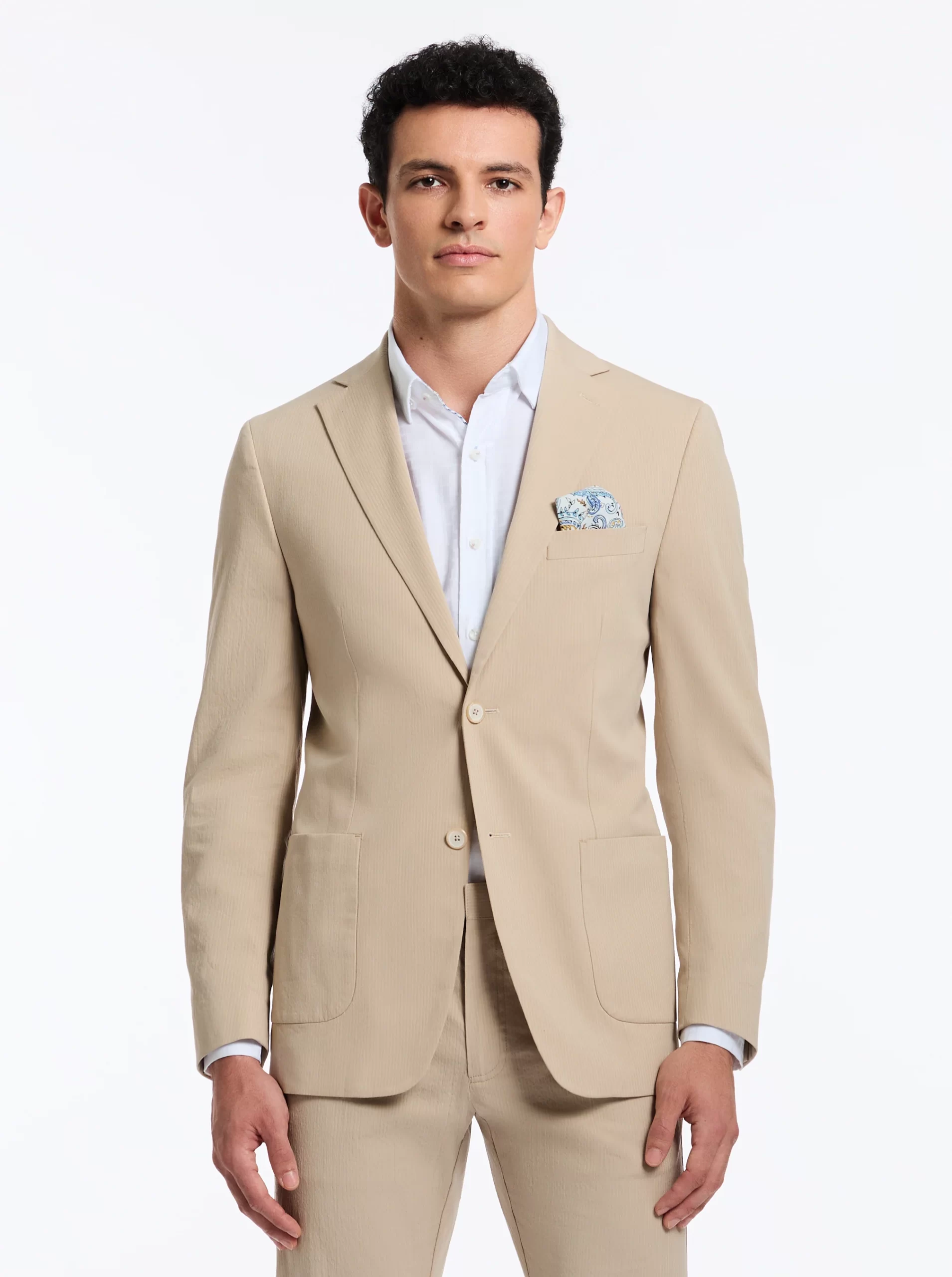 A seersucker blazer is a wardrobe essential. Notice the thoughtful details, like the pearlescent buttons and chest pocket at front. An elegant interior lining adds a bold finishing touch. Pair back to our matching seersucker pant for a coordinated ensemble that’s perfect for everything from weddings to garden parties. This style is slightly fitted. It is tailored for a closer-to-the-body fit, with all the RG personality you expect.