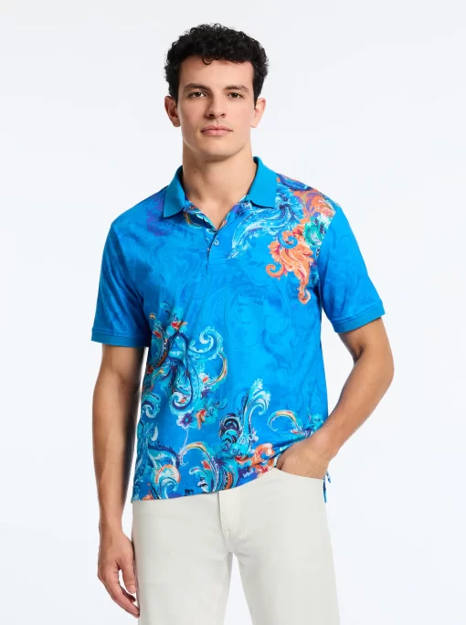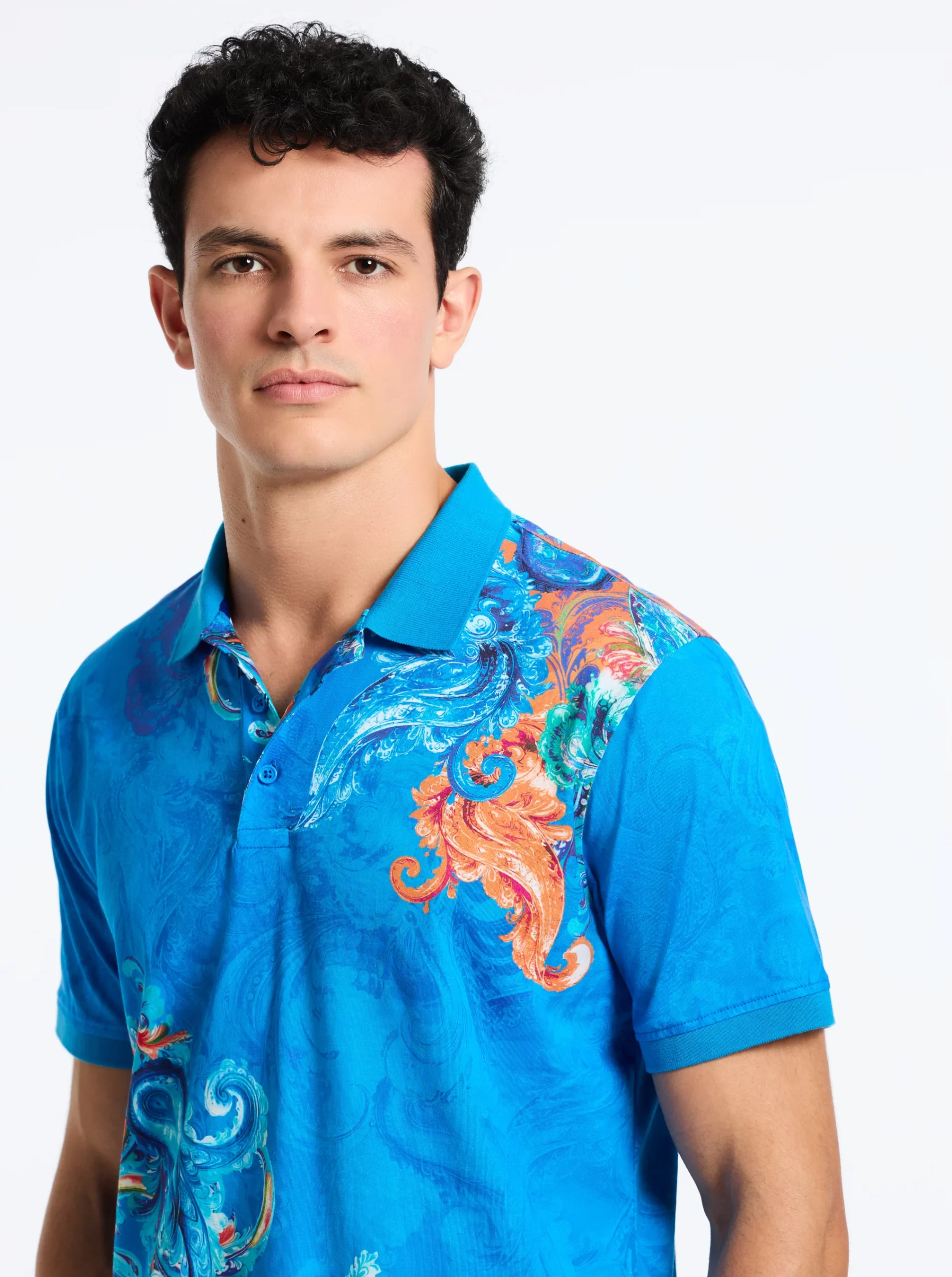 Robert Graham Men’s Royal Scroll Short Sleeve Polo | Blue