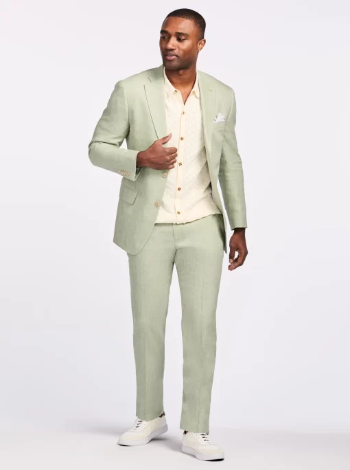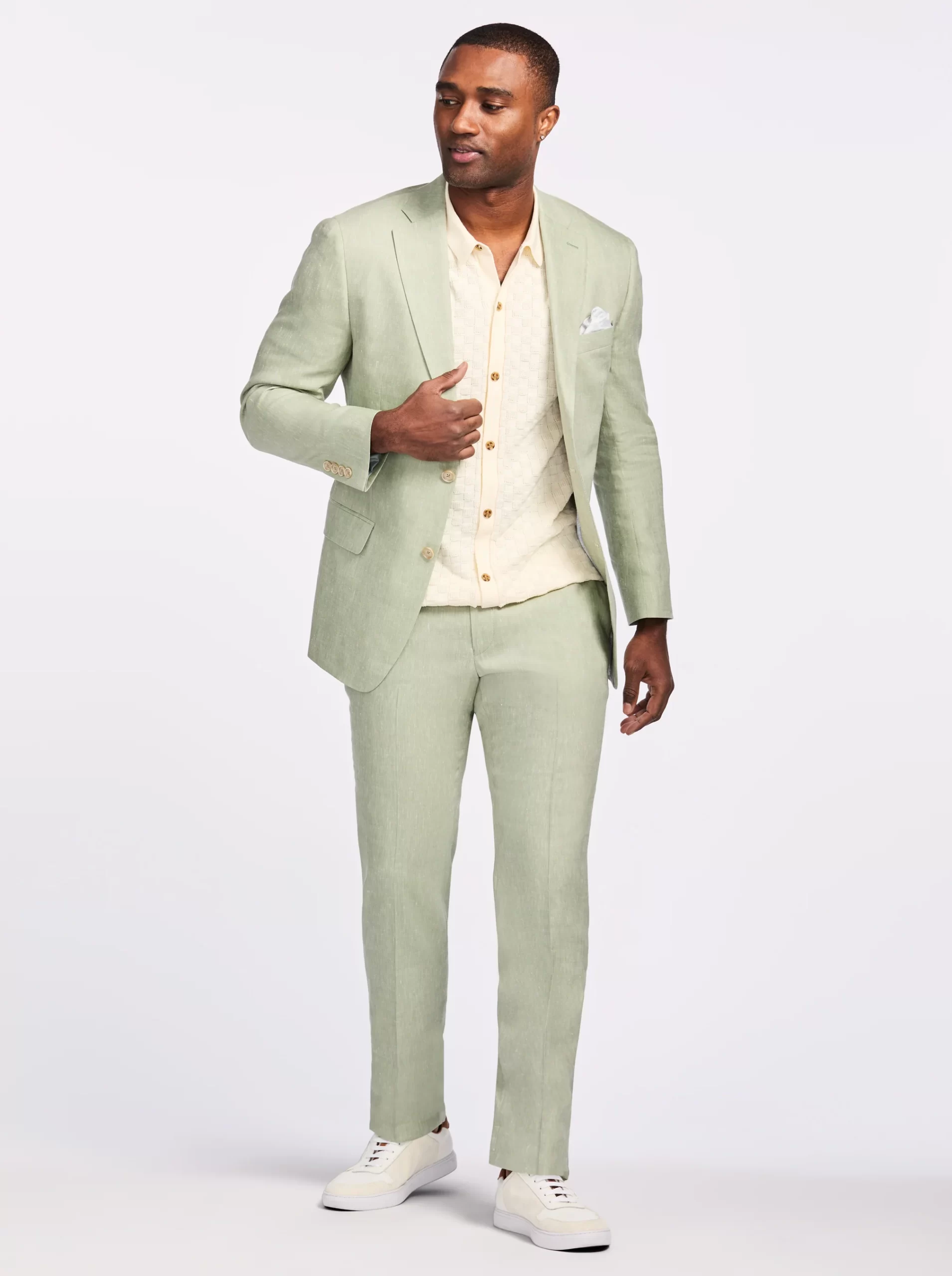 Upgrade your look with these dress pants in a soft, sage-colored linen. The breezy fabric offers comfort and breathability, while the crisp tailoring ensures easy styling for any outfit. Whether dressed up or down, these pants pair effortlessly with the matching blazer for a head-to-toe look that’s sure to impress.