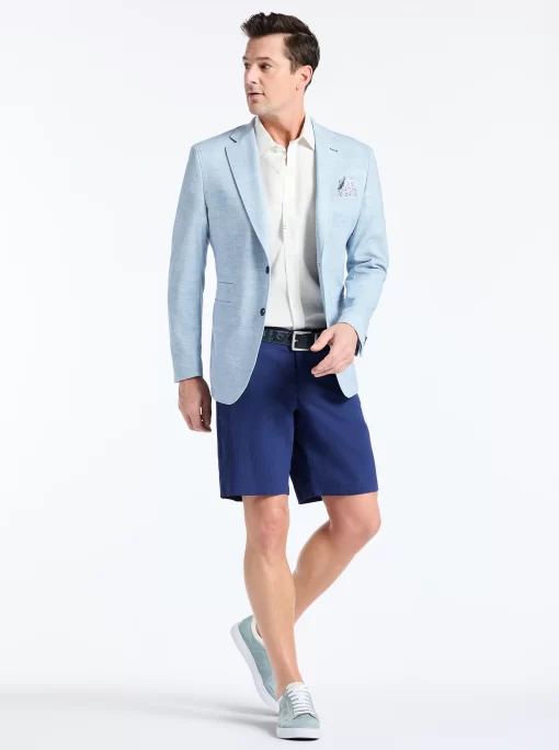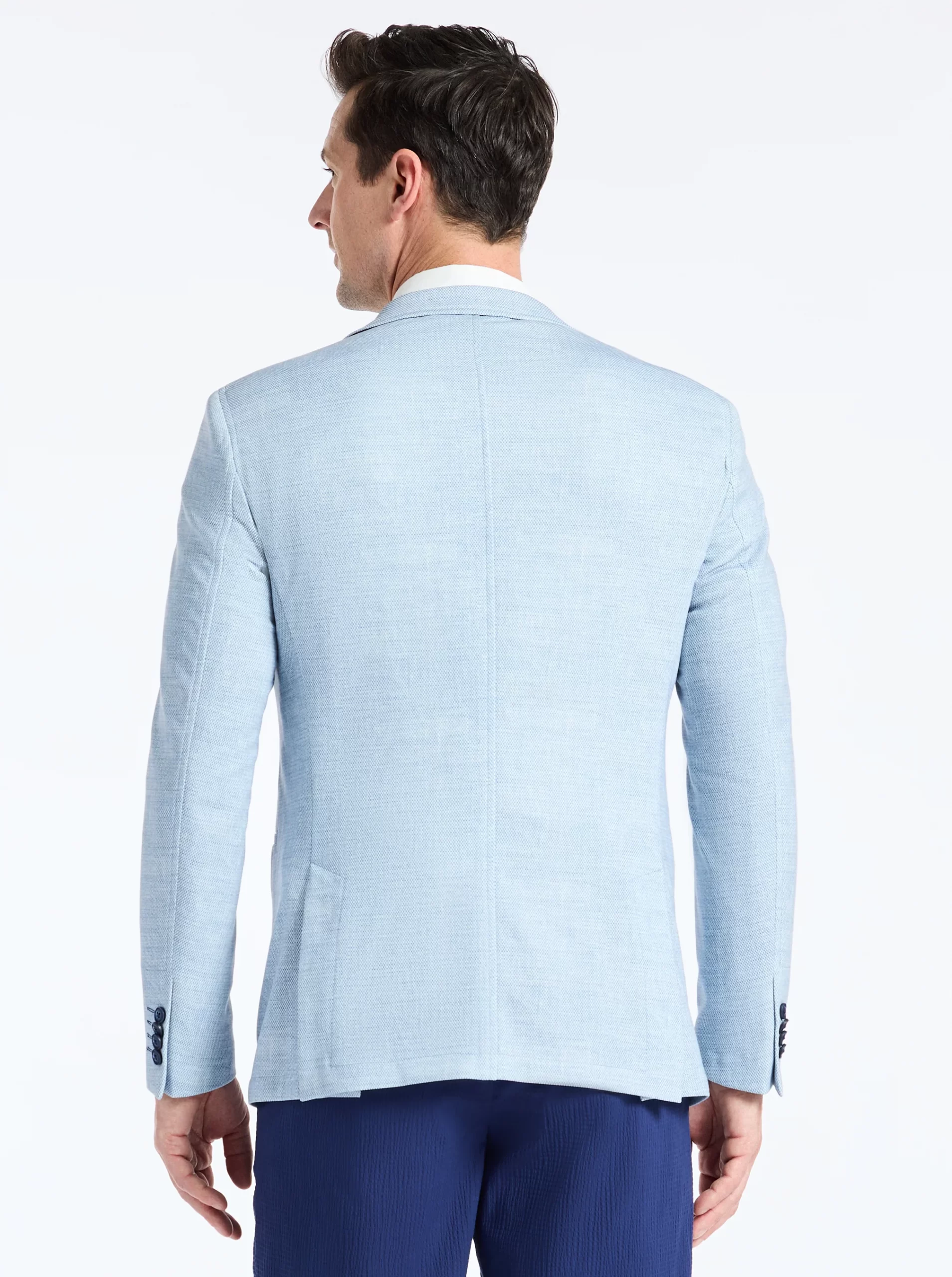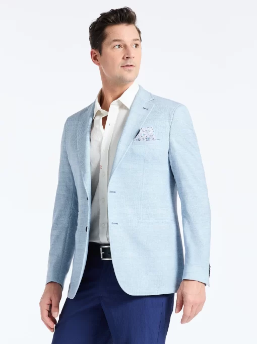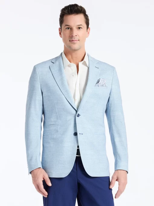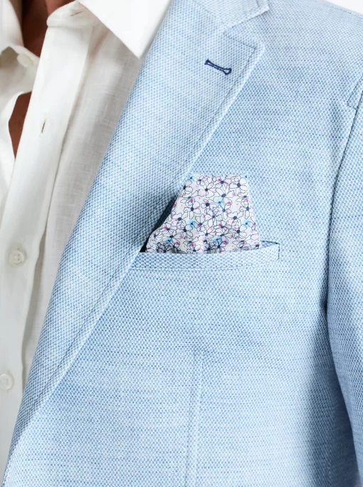 Elevate your everyday look with this luxe lightweight knit blazer. You’ll love the ease of layering this unlined style over your favorite button down or graphic tee. A floral-printed pullout pocket square adds a dapper finishing touch to this elegant piece. This style is slightly fitted. It is tailored for a closer-to-the-body fit, with all the RG personality you expect.