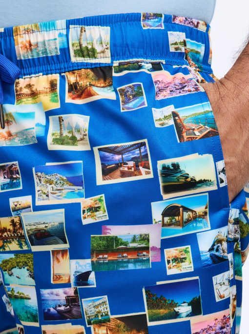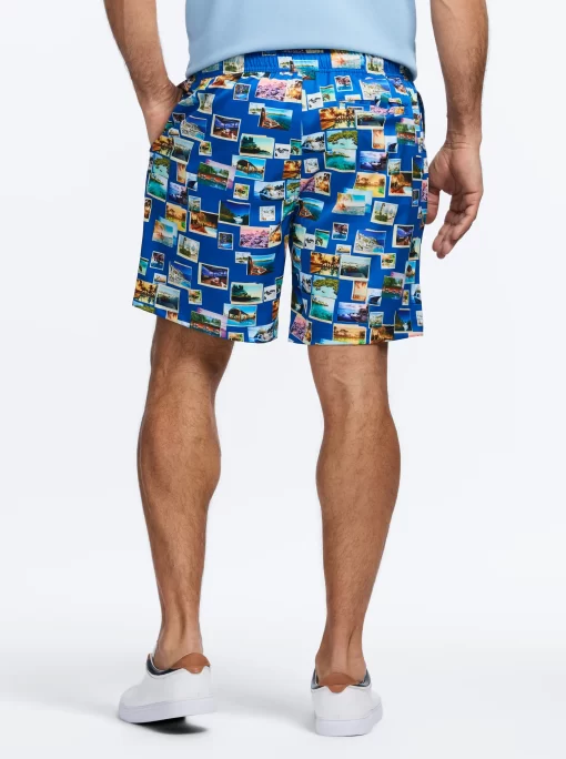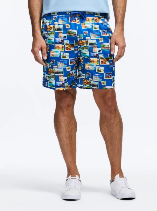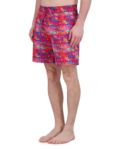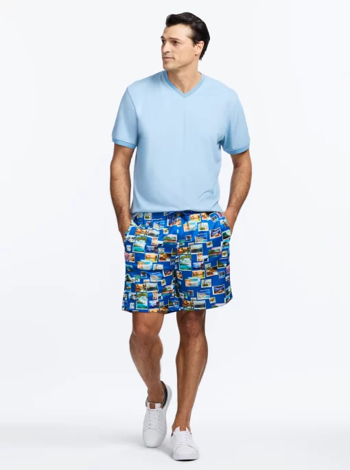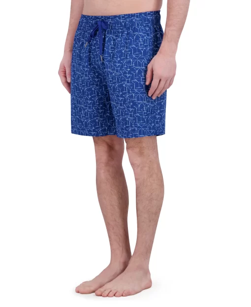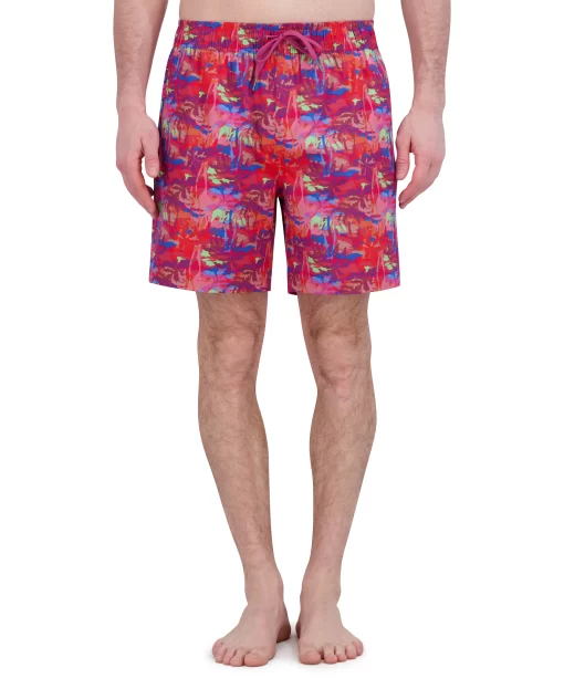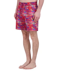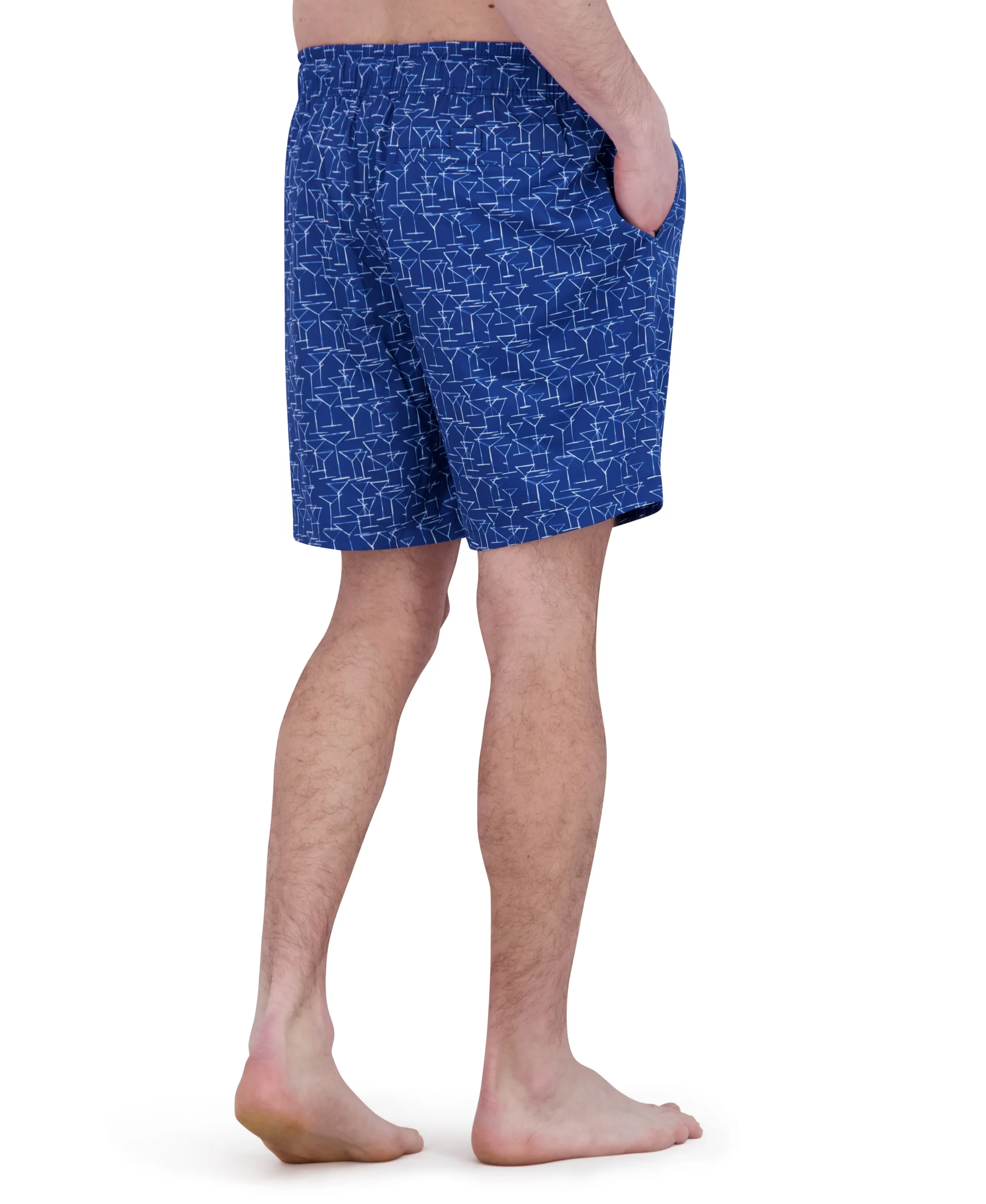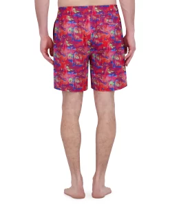 Options for poolside? Right here. Make a splash in style with these versatile print swim trunks, sun soaking/lounging, and a swim. Designed for comfort, they feature a drawstring waist, mesh lining, and adjustable fit to ensure all-day ease. Whether you’re soaking up the sun or diving in, the side pockets add a practical touch. Available in 12 fun options: martinis, tigers, signature paisley, damask print, poker chips, cards, floral, Hawaiian, garden variety, color splash, postcards and palm trees. These trunks are made from 90% polyester and 10% spandex for a flexible fit.