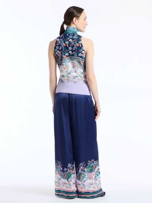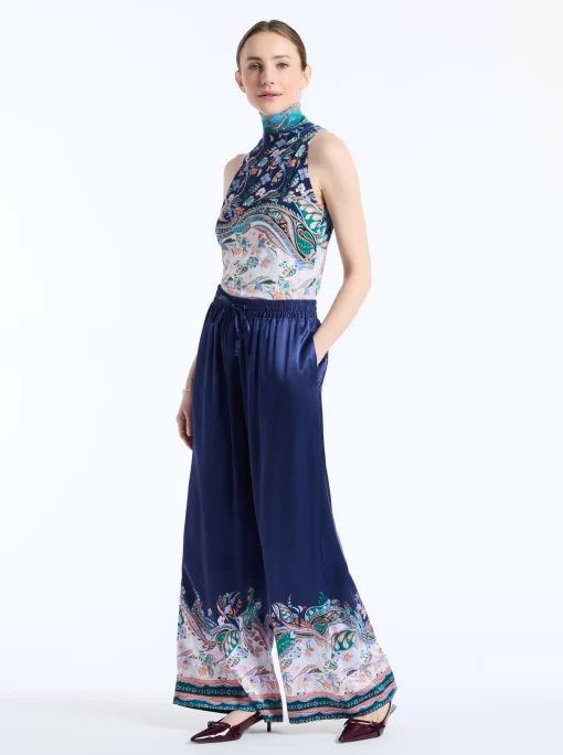 A go-to style, the Minna pant is always a stunning choice. Cut from an elegant silk charmeuse, this relaxed fit style features a bold floral border print that’s accented by a contrast design at the hem. Pair back with the matching Carrie or Angie top for a winning head-to-toe look.