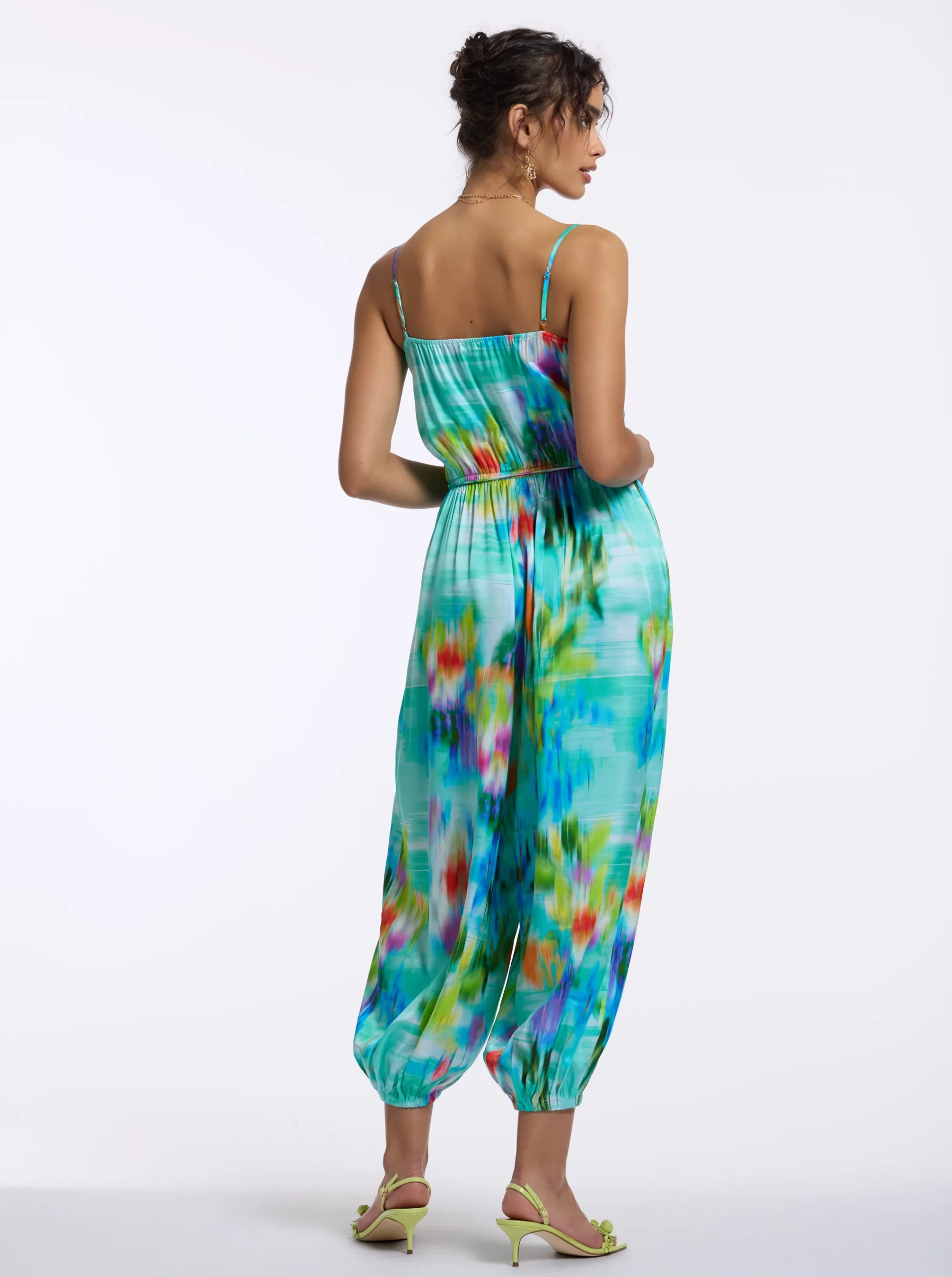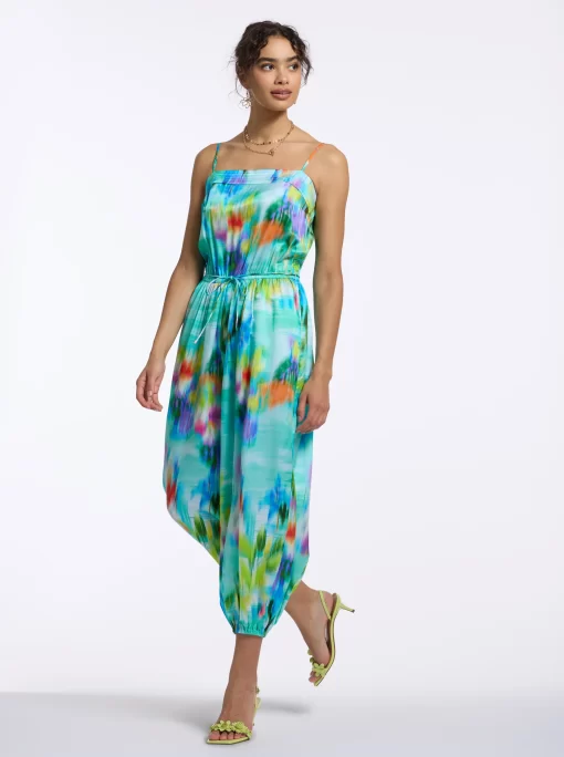 Crafted from luxurious silk charmeuse, the Nora jumpsuit effortlessly blends fashion with function. You’ll love how the bold watercolor florals make a striking statement. Perfect for nearly any occasion, this versatile piece can be dressed up with heels or kept casual with flats, offering the ideal mix of sophistication and ease.